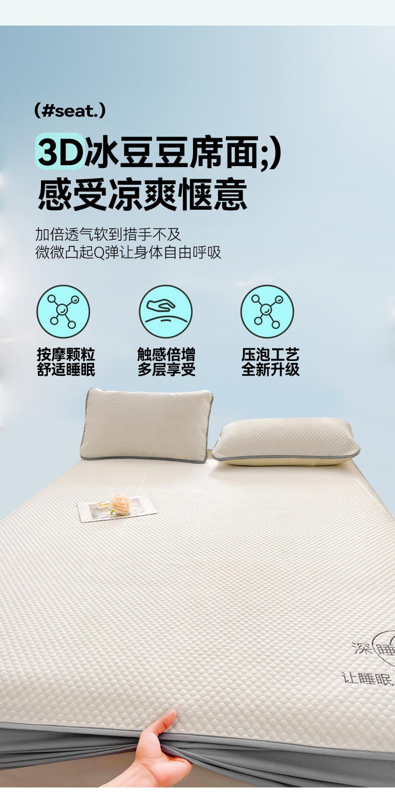 当前位置: 91家纺网 > 商品网购 > 床上用品 > 凉席 > 其他凉席 > 卡诗兰 2026新款A类凉感豆豆床笠款凉席 床笠-清涧白