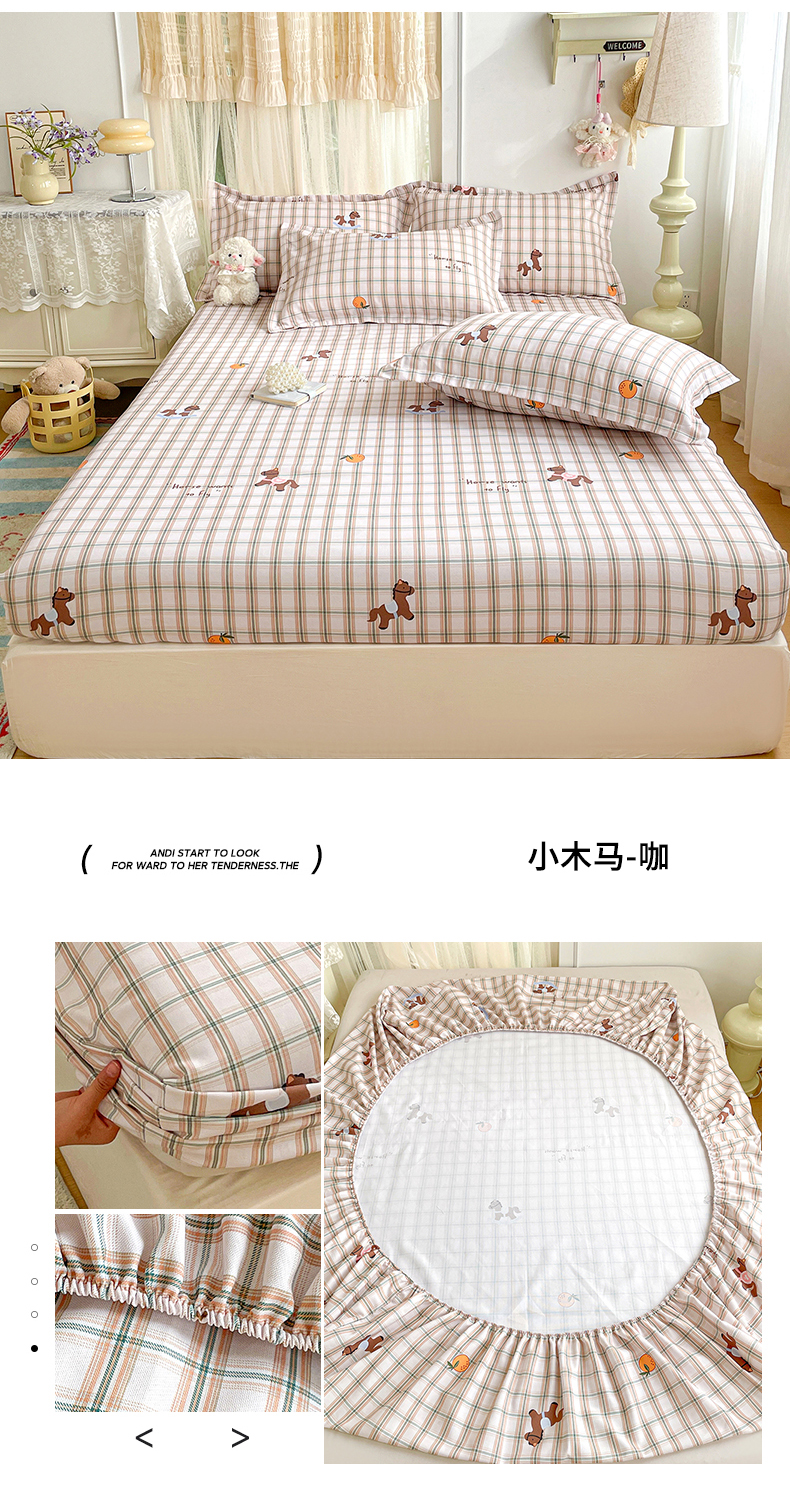纽缦家纺 2026新款舒适透气细沙卡通印花老粗布床笠 清香莓果-粉