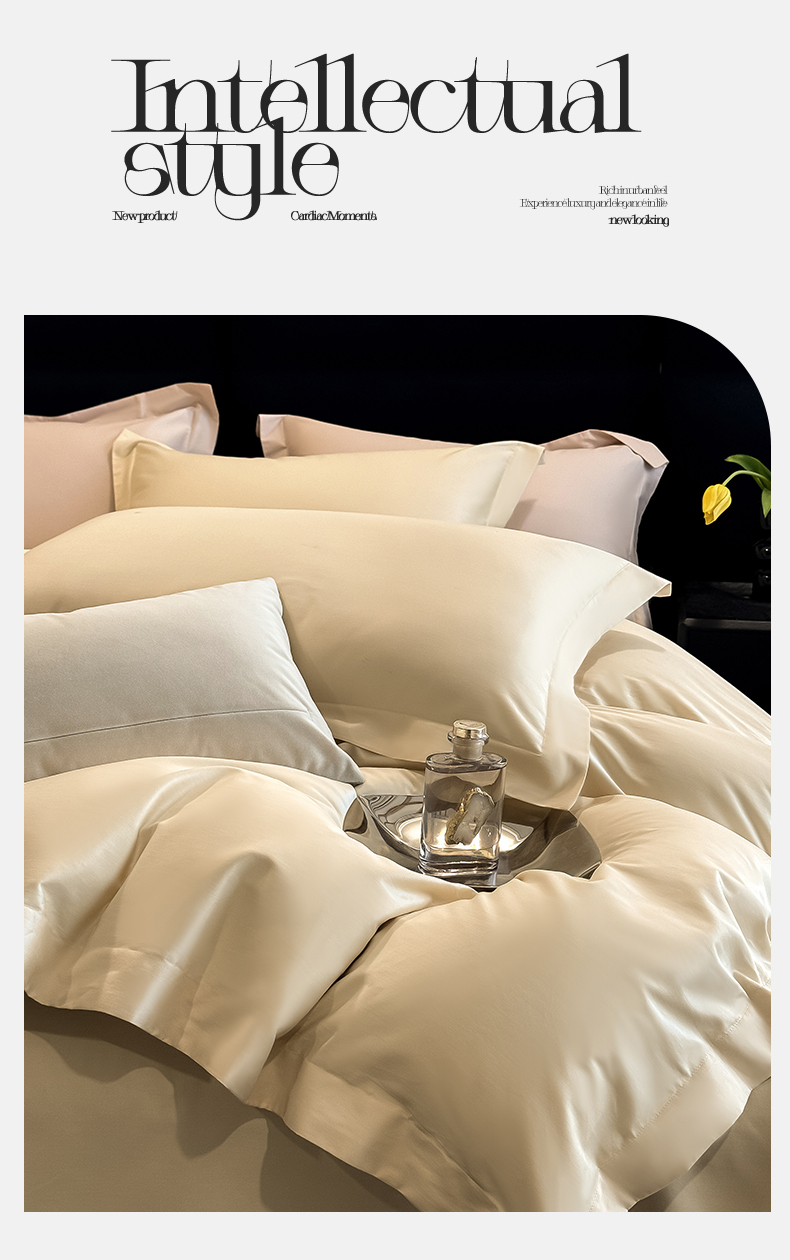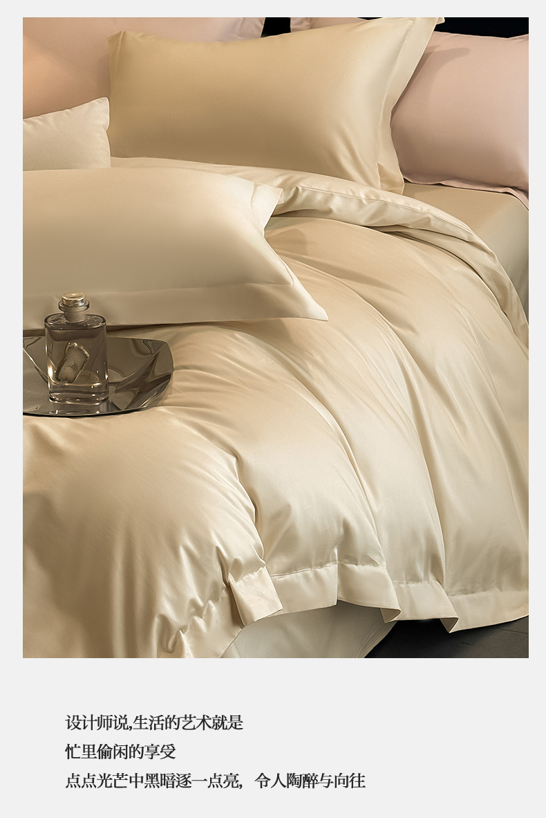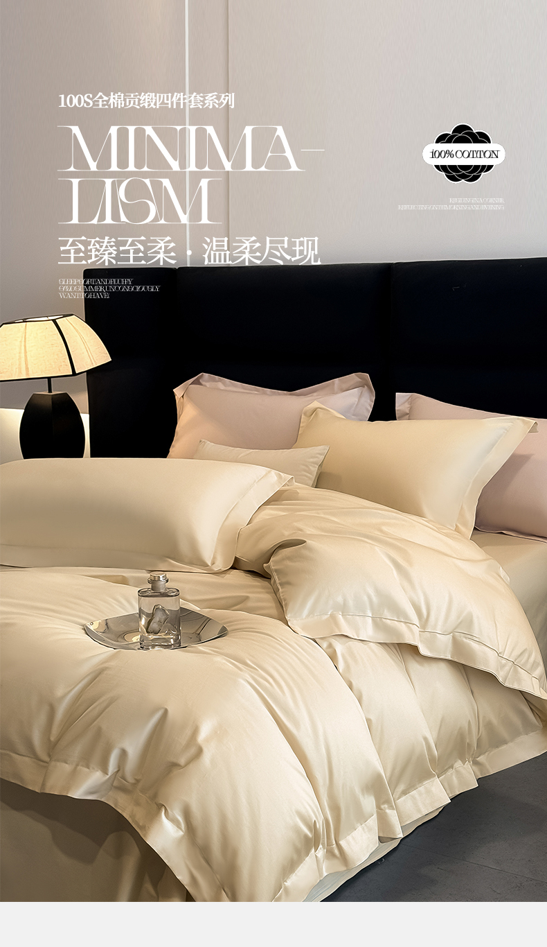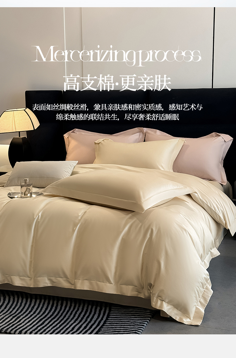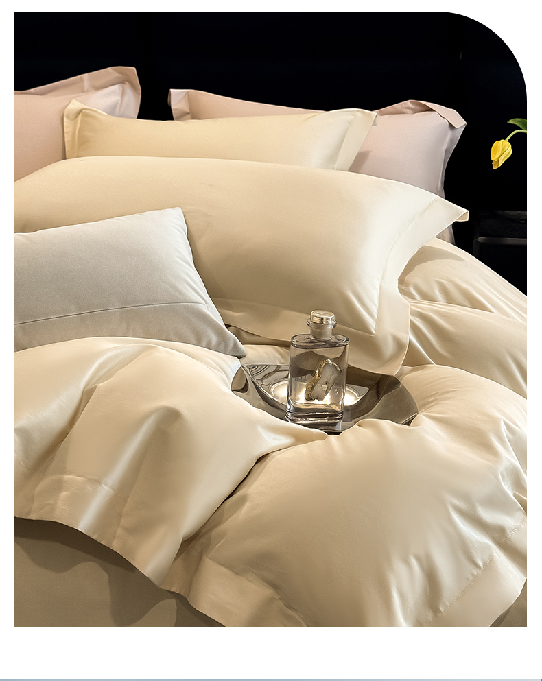 朵希曼 2026春夏新款纯色贡缎长绒棉纯棉系列四件套 米黄