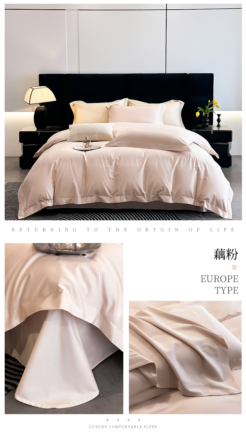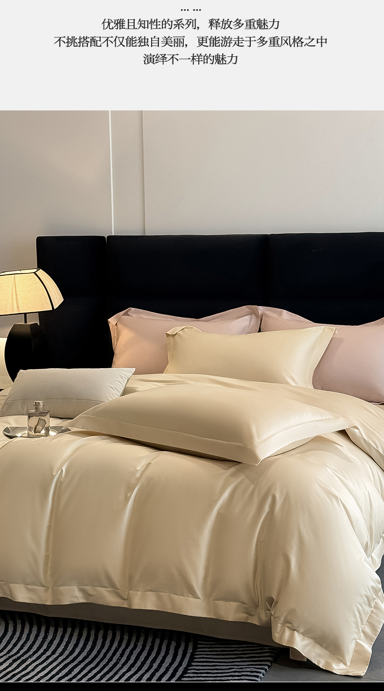 (总)朵希曼 2026春夏新款纯色贡缎长绒棉纯棉系列四件套,宾利蓝,典雅灰,湖水兰,梦幻紫,米黄,墨绿,藕粉,棕咖