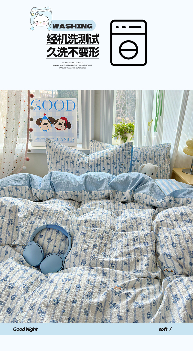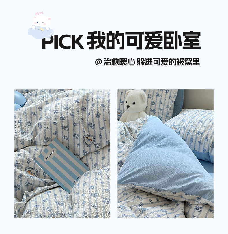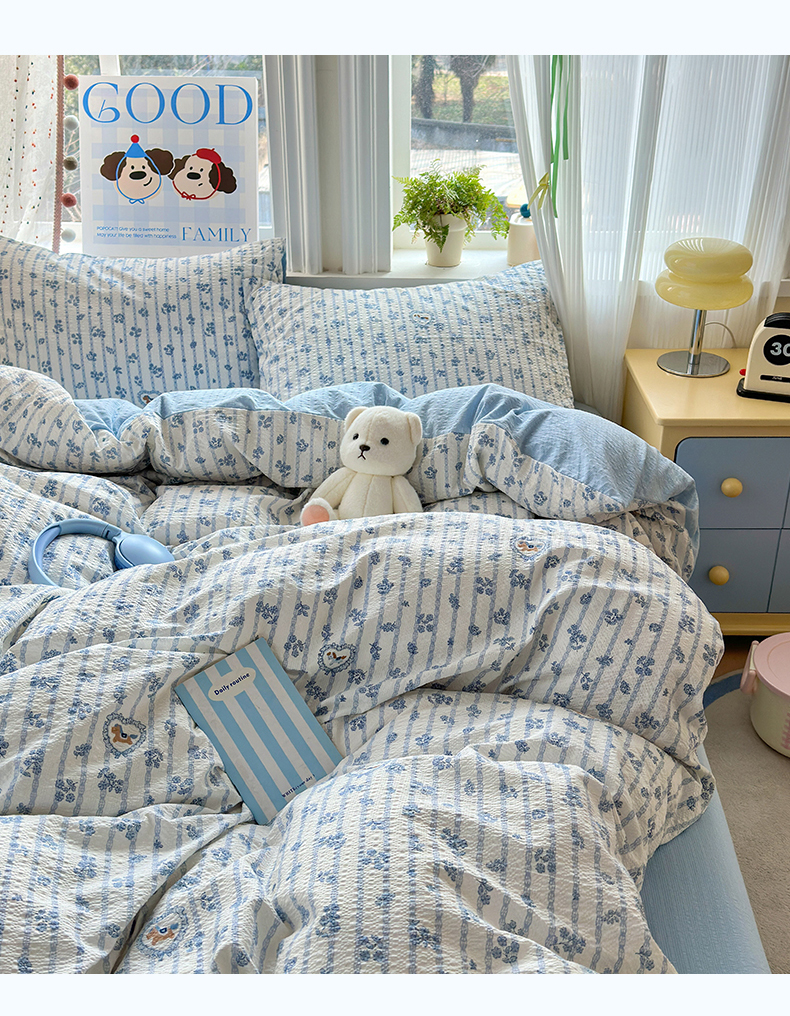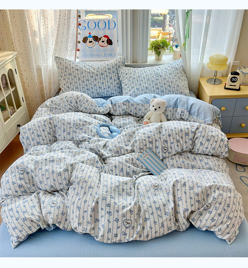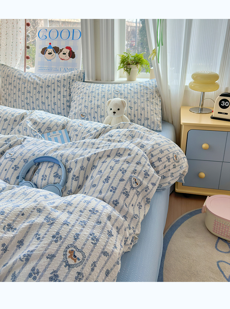 当前位置: 91家纺网 > 商品网购 > 床品套件 > 四件套 > 其它四件套 > 佳鸿 2026新款泡芙棉软糯糯高克重110克四件套学生宿舍三件套单被套 蓝花小马
