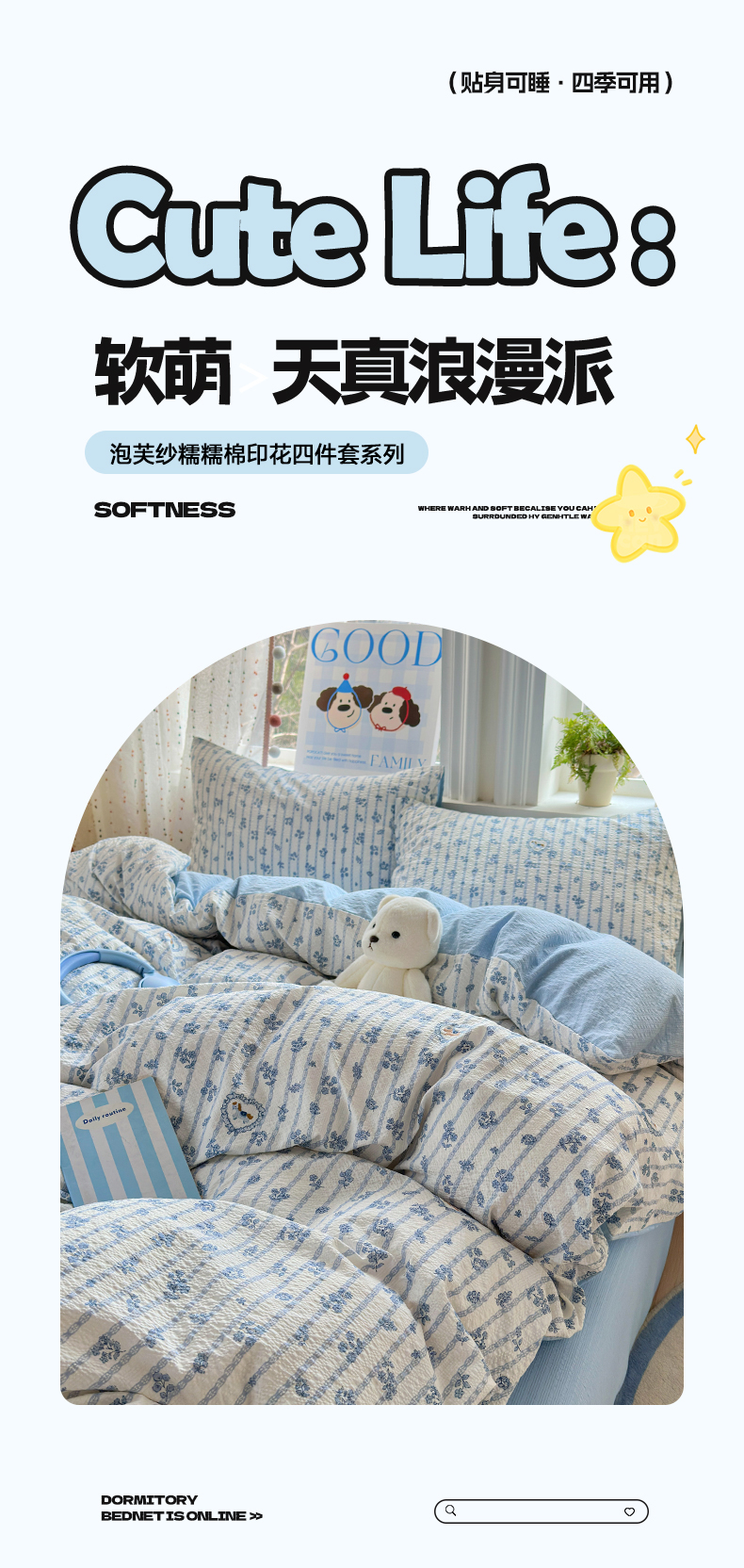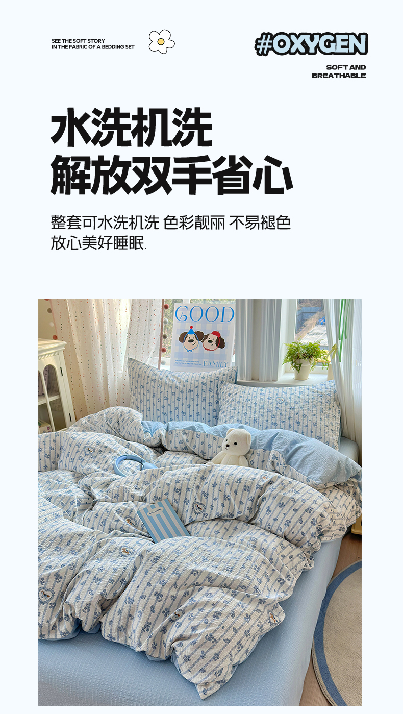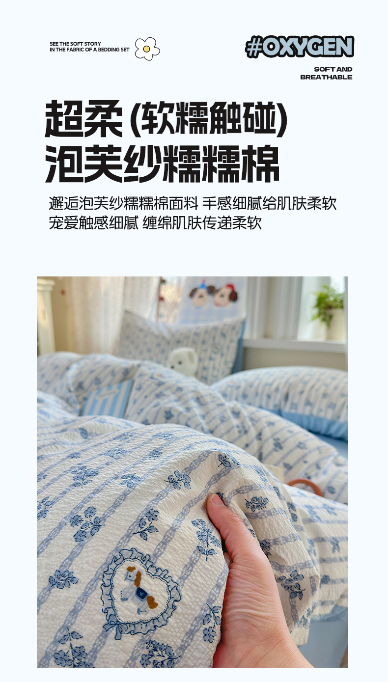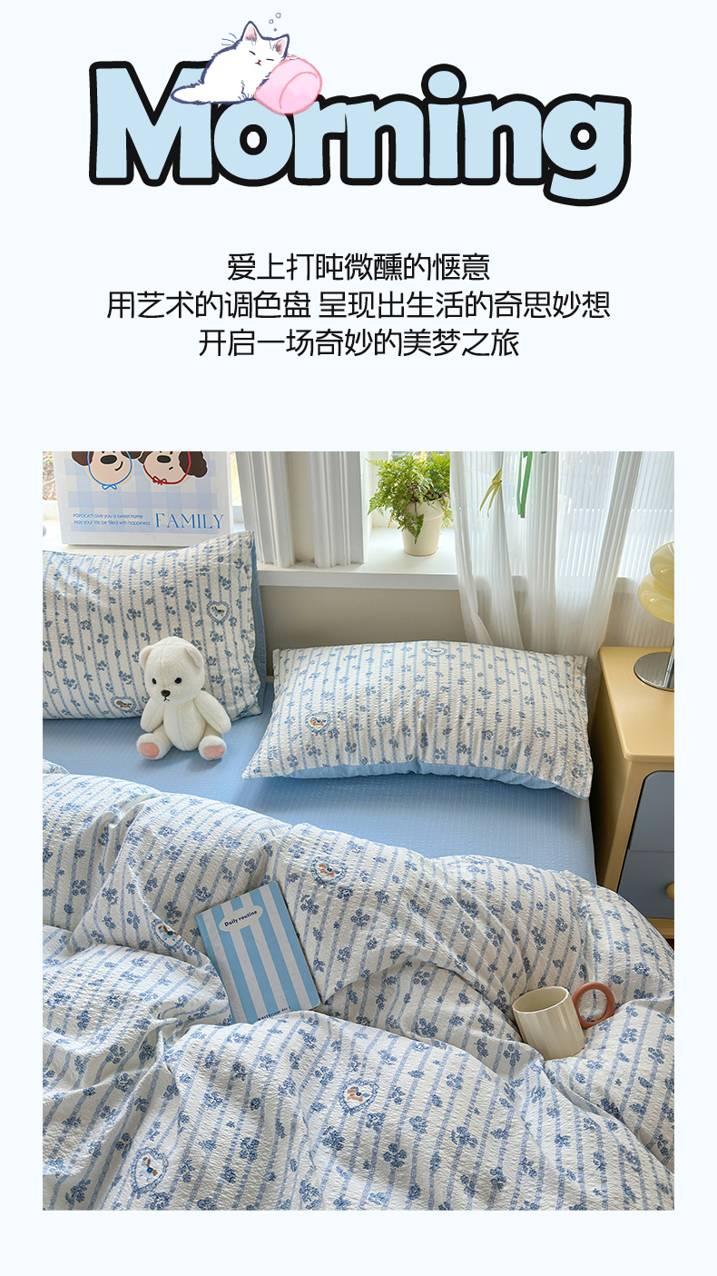 当前位置: 91家纺网 > 商品网购 > 床品套件 > 四件套 > 其它四件套 > 佳鸿 2026新款泡芙棉软糯糯高克重110克四件套学生宿舍三件套单被套 蓝花小马