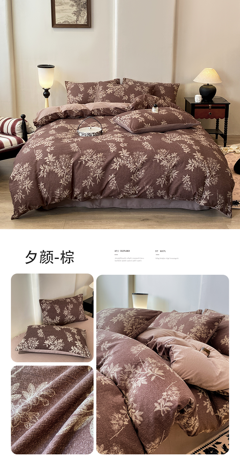 直播2024新款斜纹磨毛印花四件套植物羊绒套件秋风似锦,秋风似锦
