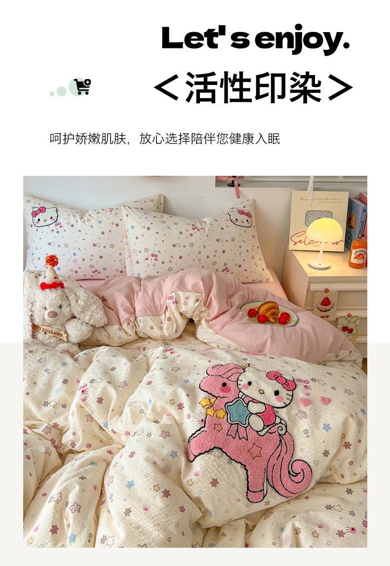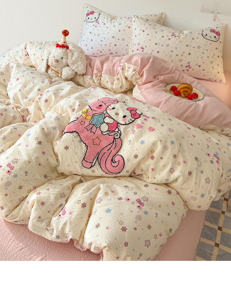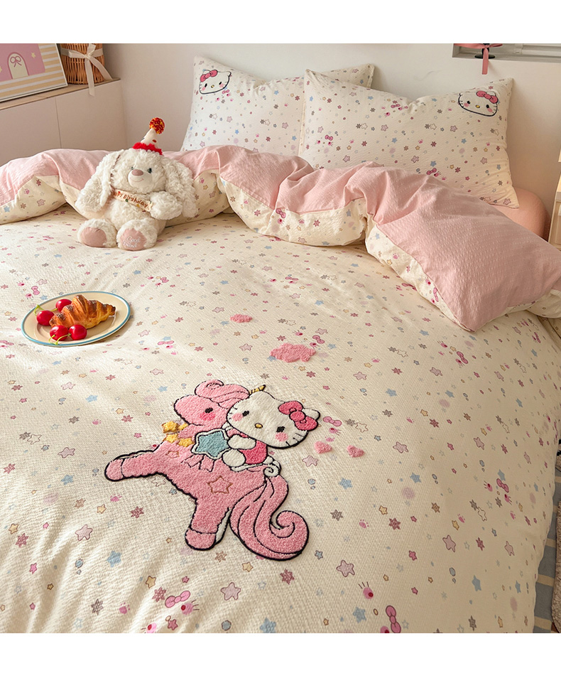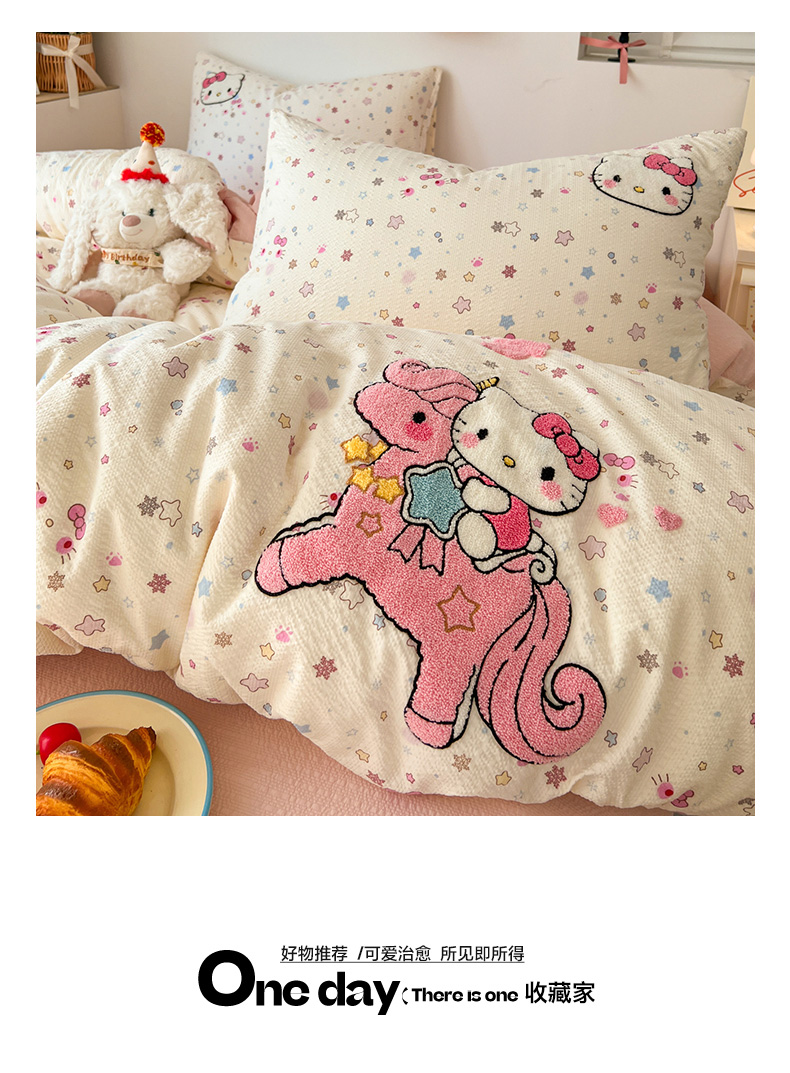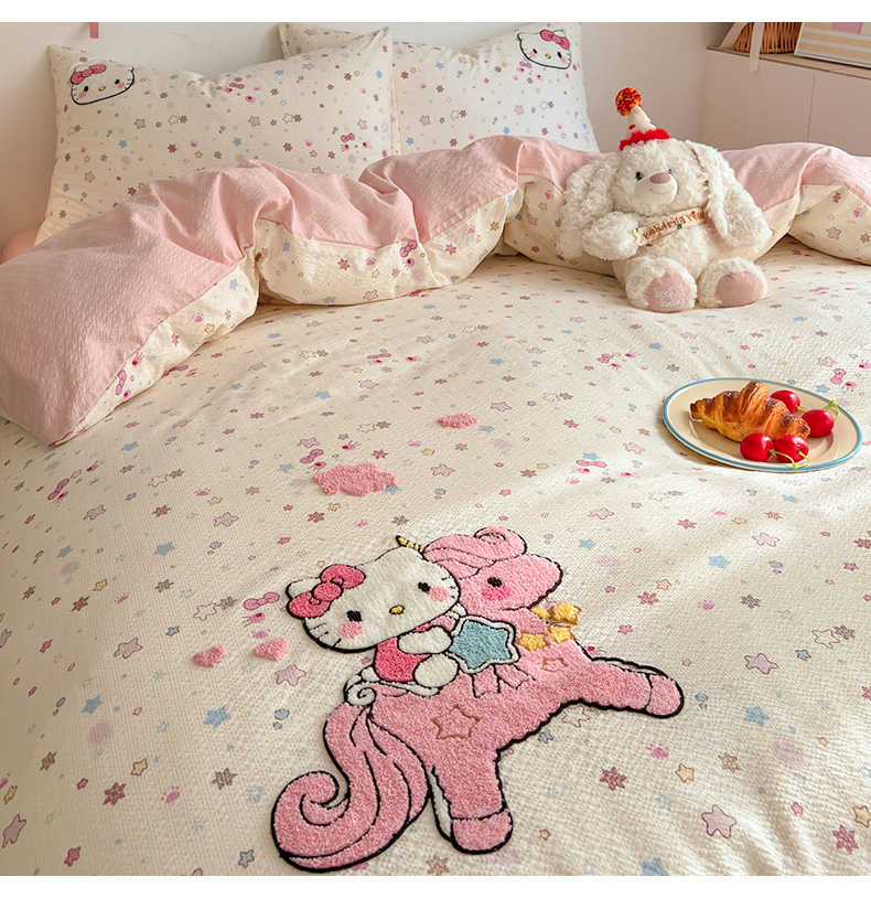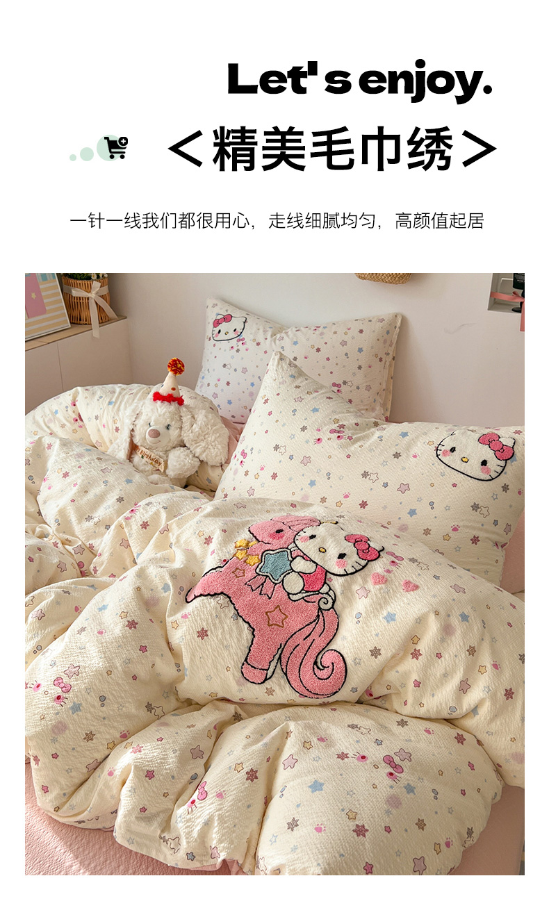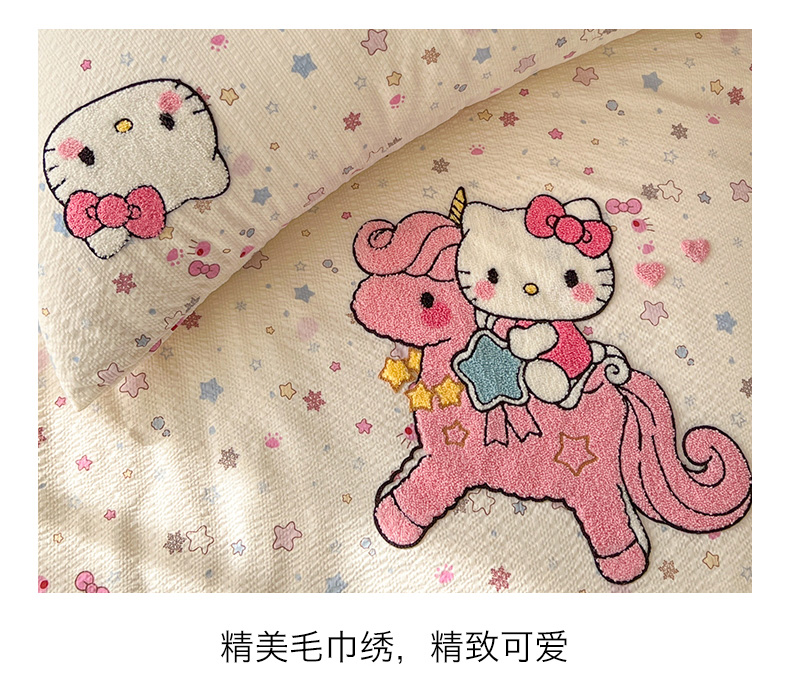 当前位置: 91家纺网 > 商品网购 > 床品套件 > 四件套 > 水洗棉四件套 > 童颜 2026新款软糯泡芙纱水洗棉卡通毛巾绣四件套 独角猫咪