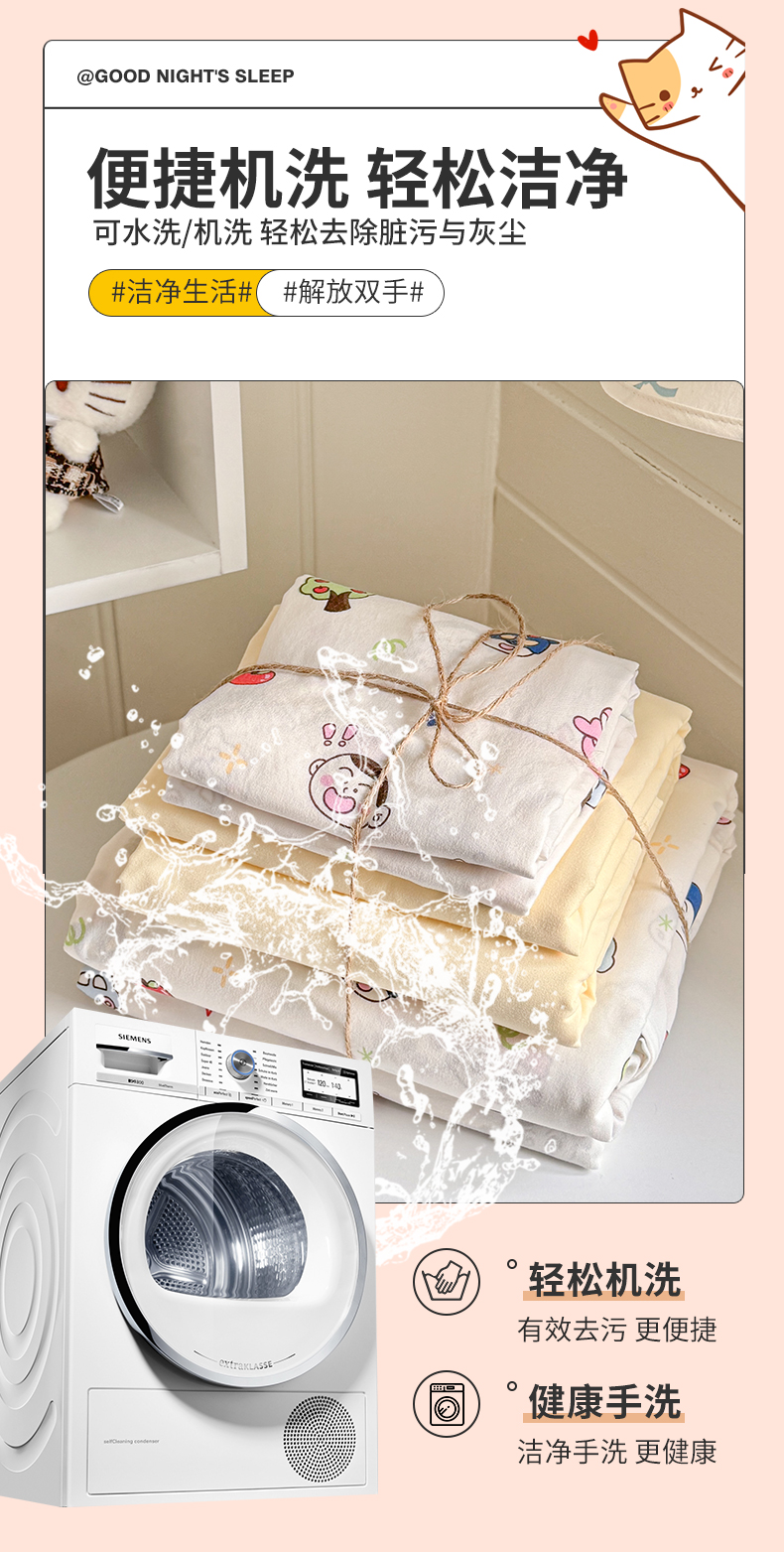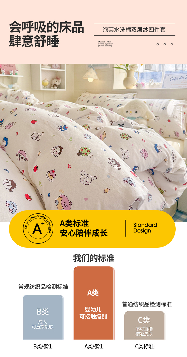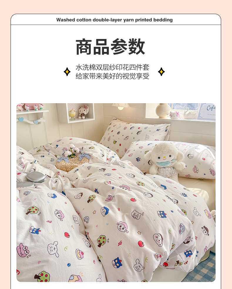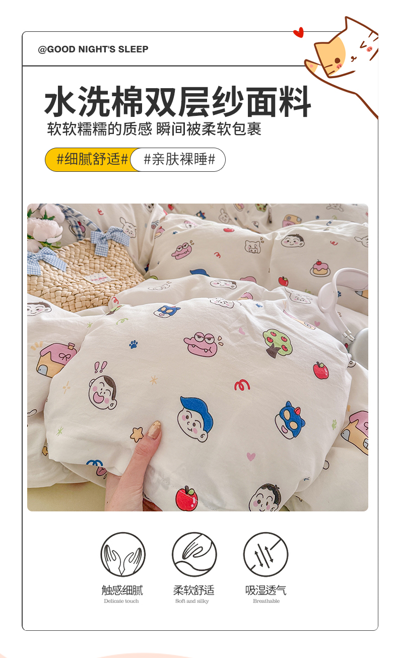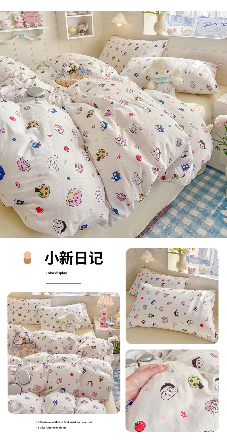 当前位置: 91家纺网 > 商品网购 > 床品套件 > 四件套 > 其它四件套 > 罗亿家纺 2026年新款泡芙水洗棉双层纱四件套 小新日记