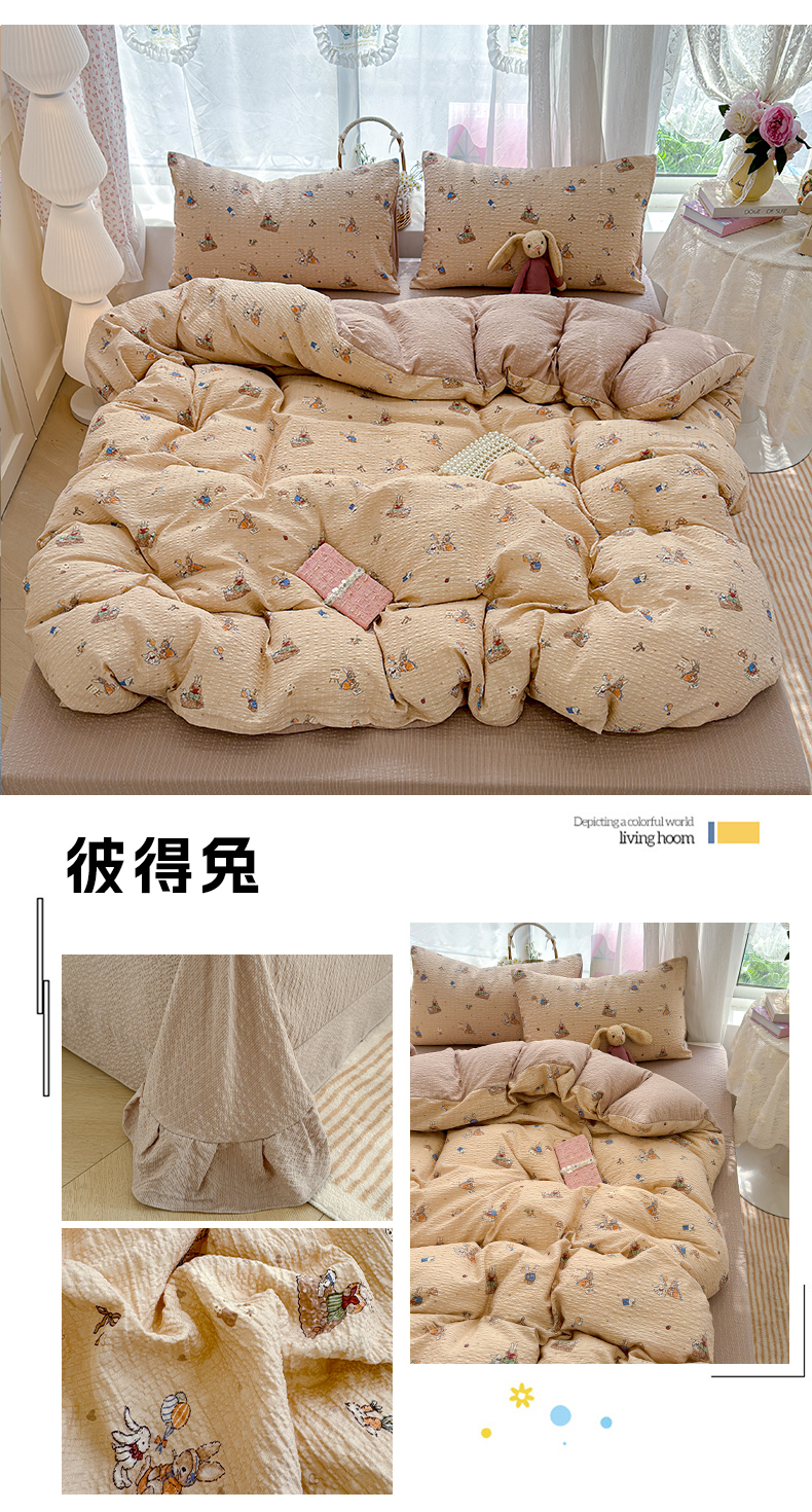 (总)竹合家纺 2026春夏新品高克重A类泡芙纱泡泡皱皱纱四件套,梅果小兔,复古结美,紫色花园,温莎粉,晚安宝贝,禾里,花中小熊,约定一粉,星星仔,爱心点点,浅唱花语,爱心小熊,条纹腊肠狗,初见一蓝,马到成功,西雅图,紫萱花开,豹纹KT猫,幽兰花谷,波西米亚蓝,侏罗纪,赫本印象,熊先生,暮野,爱意浓,彼得兔,布丁小兔,桔果,天鹅湖,山花漫