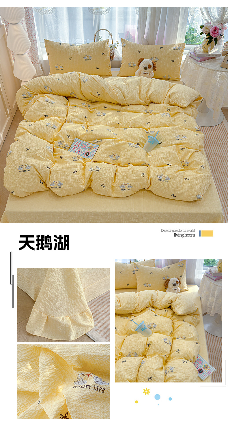 竹合家纺 2026春夏新品高克重A类泡芙纱泡泡皱皱纱四件套 天鹅湖