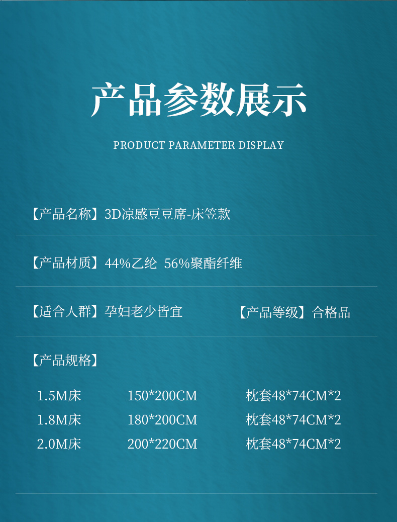 商品名称:小牛席业 2026新款7D速冷凉感豆豆席系列(床笠款) 浅绿