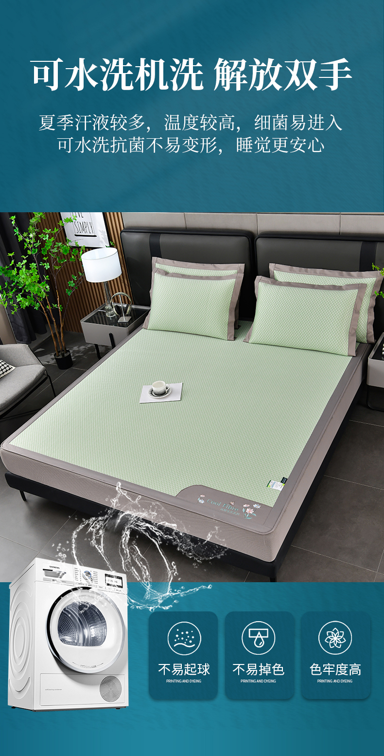 (总)2023新款超精密冰丝席-小斜纹系列-床笠款藤席凉席竹席,粉色,蓝色,绿色,银灰