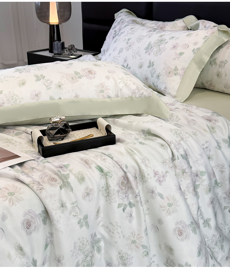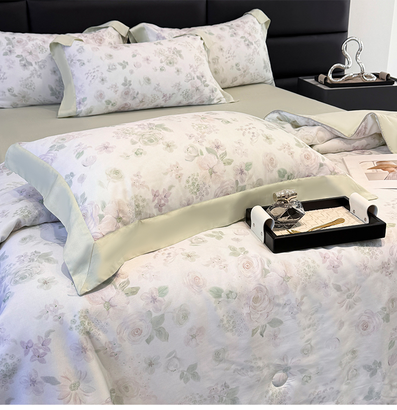 当前位置: 91家纺网 > 商品网购 > 床品套件 > 四件套 > 夏被四件套 > 宜家坊 2026春夏新款莱赛尔天丝夏被嵌绳款数码印花单夏被夏被四件套 松绿玫瑰