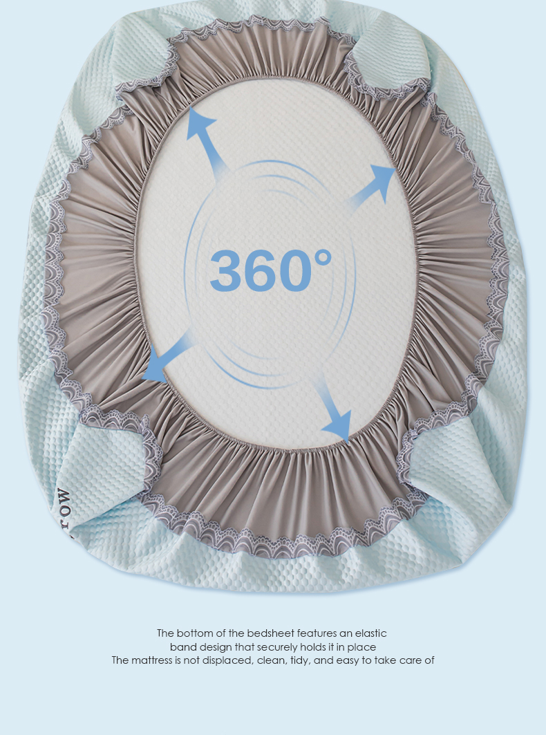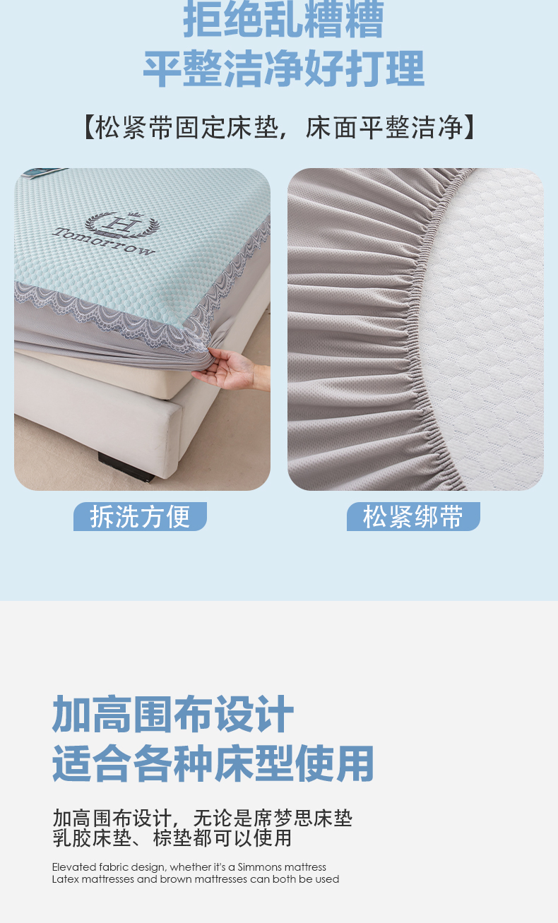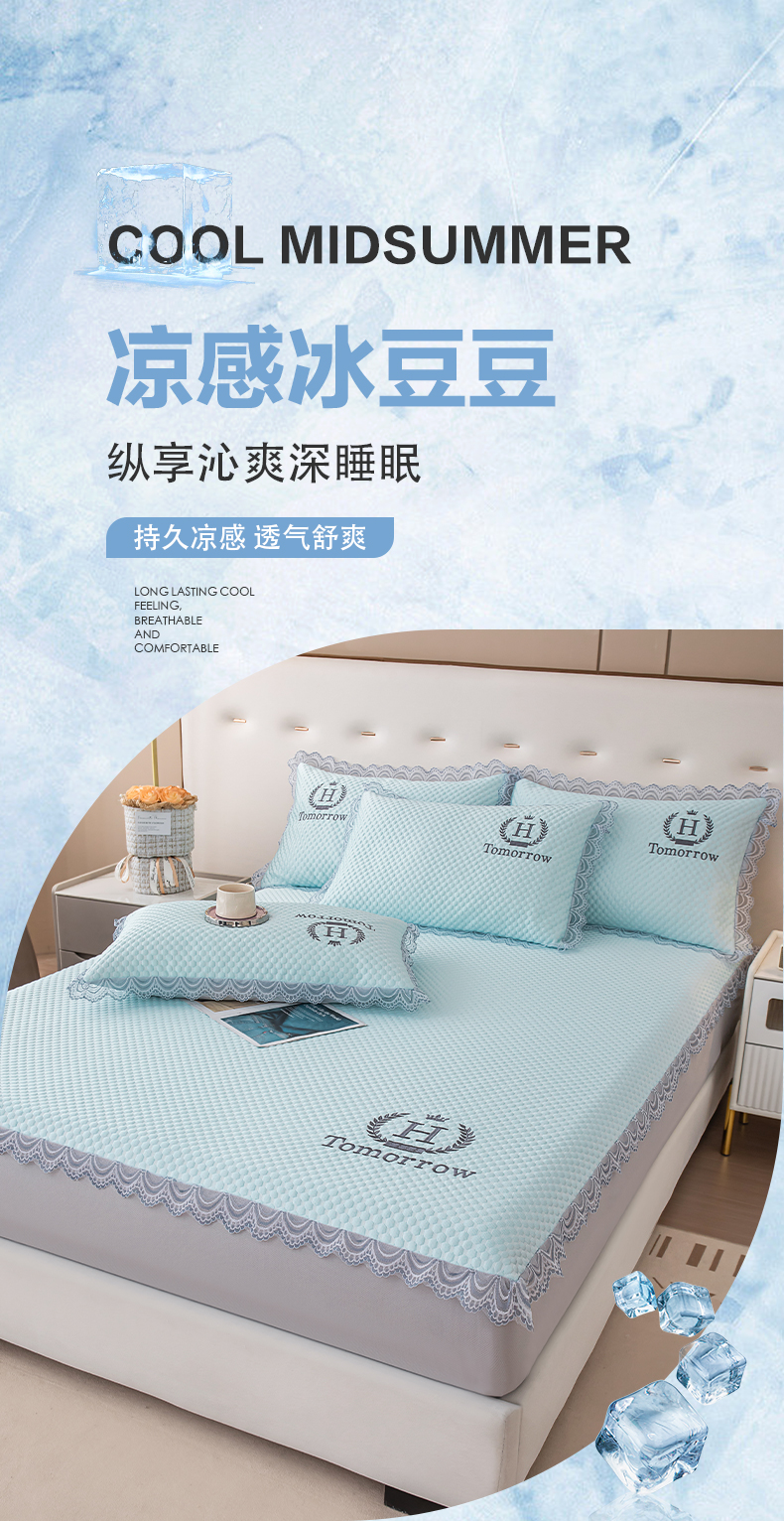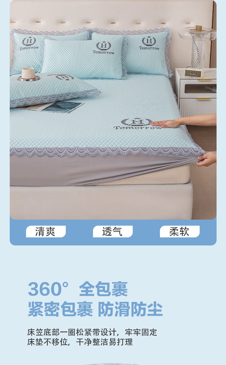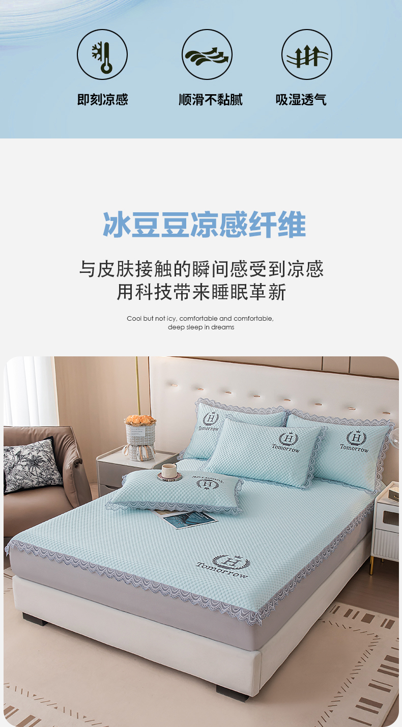 (总)优姿家纺 2025新款500克冰豆豆床裙凉席三件套,冰川蓝,高级灰,公主粉,奶油咖,青草绿,天空蓝