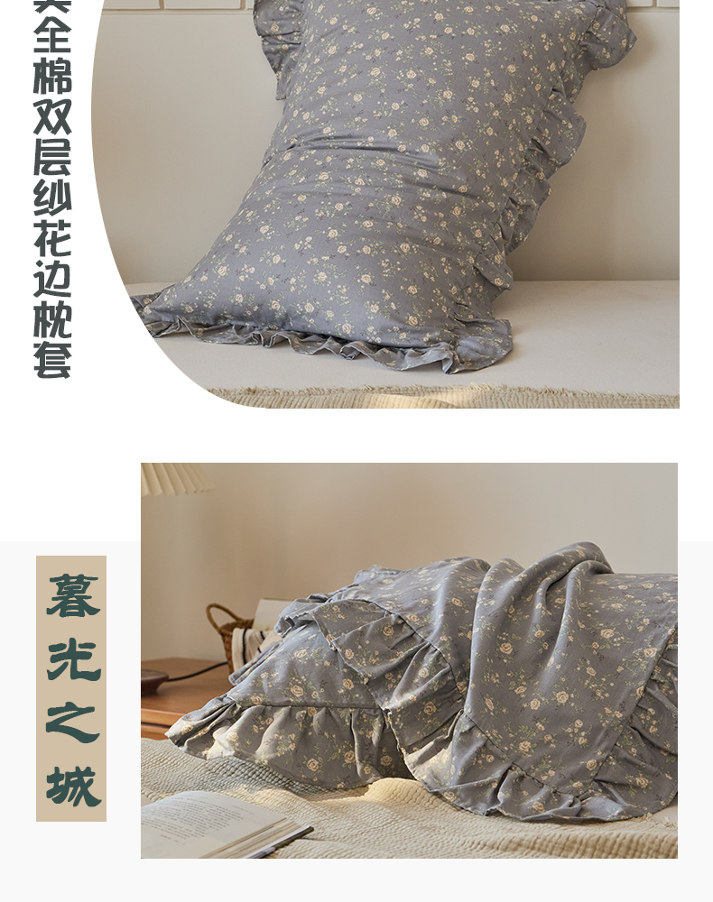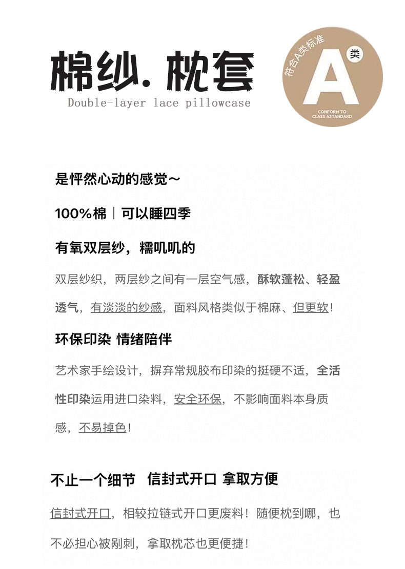商品名称:(总)百寐 2026全棉双层纱A类纯棉纱布花边加大50*80枕套48*74/40*60枕芯保护套