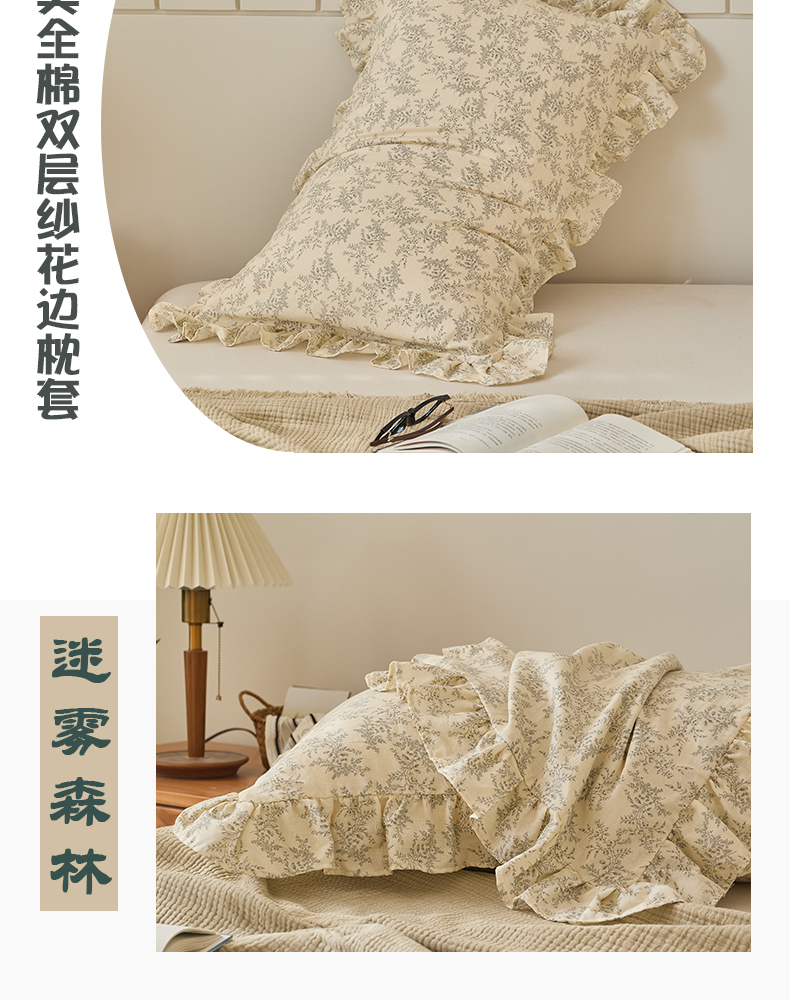 (总)百寐 2026全棉双层纱A类纯棉纱布花边加大50*80枕套48*74/40*60枕芯保护套