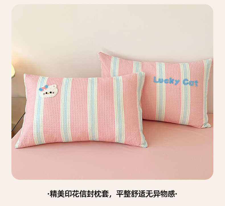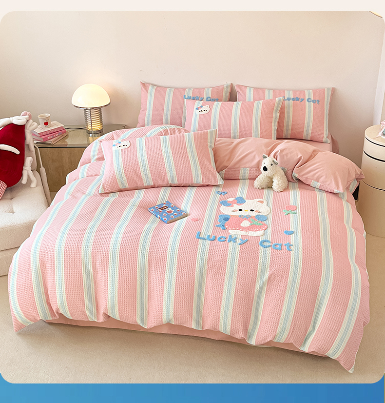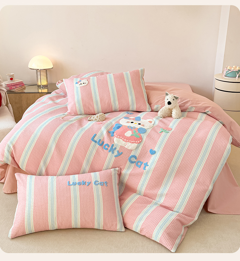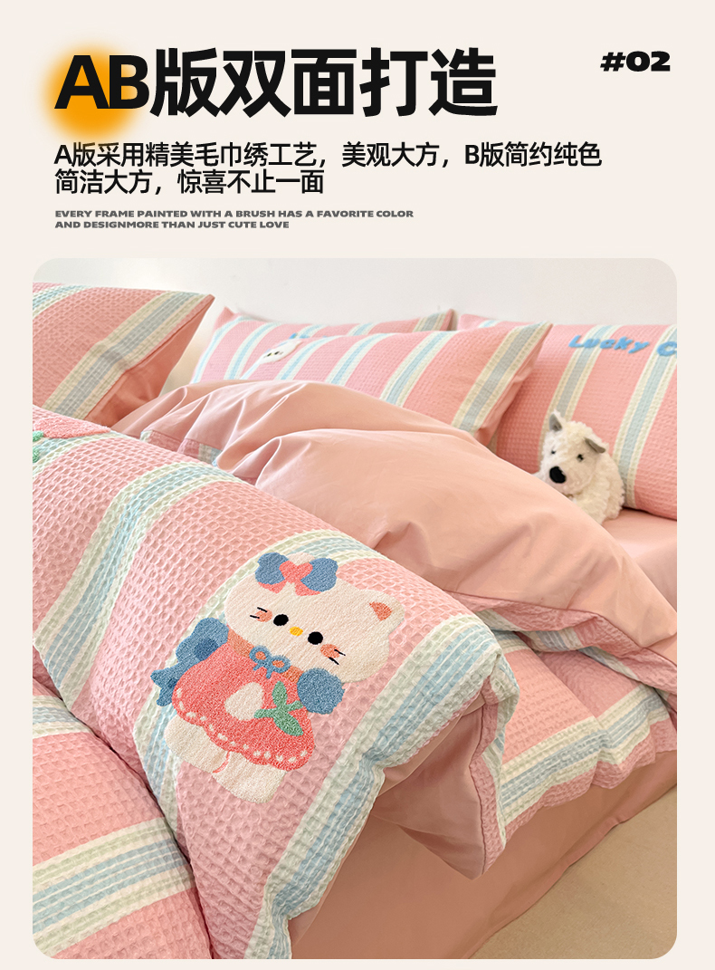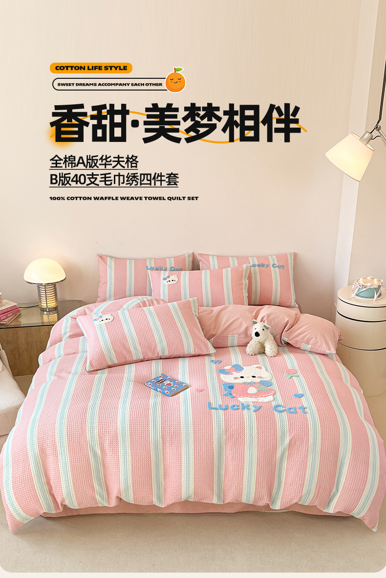 当前位置: 91家纺网 > 商品网购 > 床品套件 > 四件套 > 全棉普通四件套 > 眷恋家纺 2026新款全棉纯棉A版华夫格B版40支毛巾绣四件套 咪咪小猫