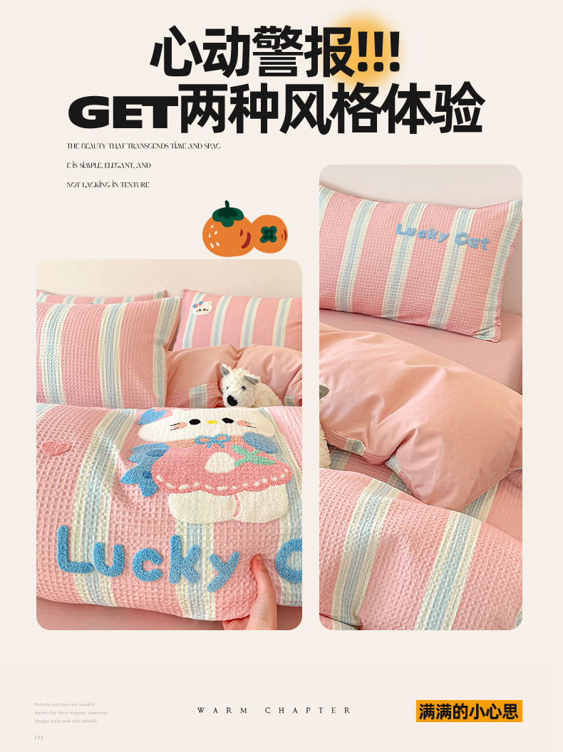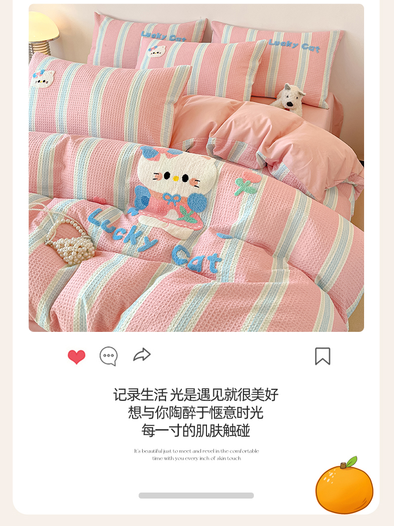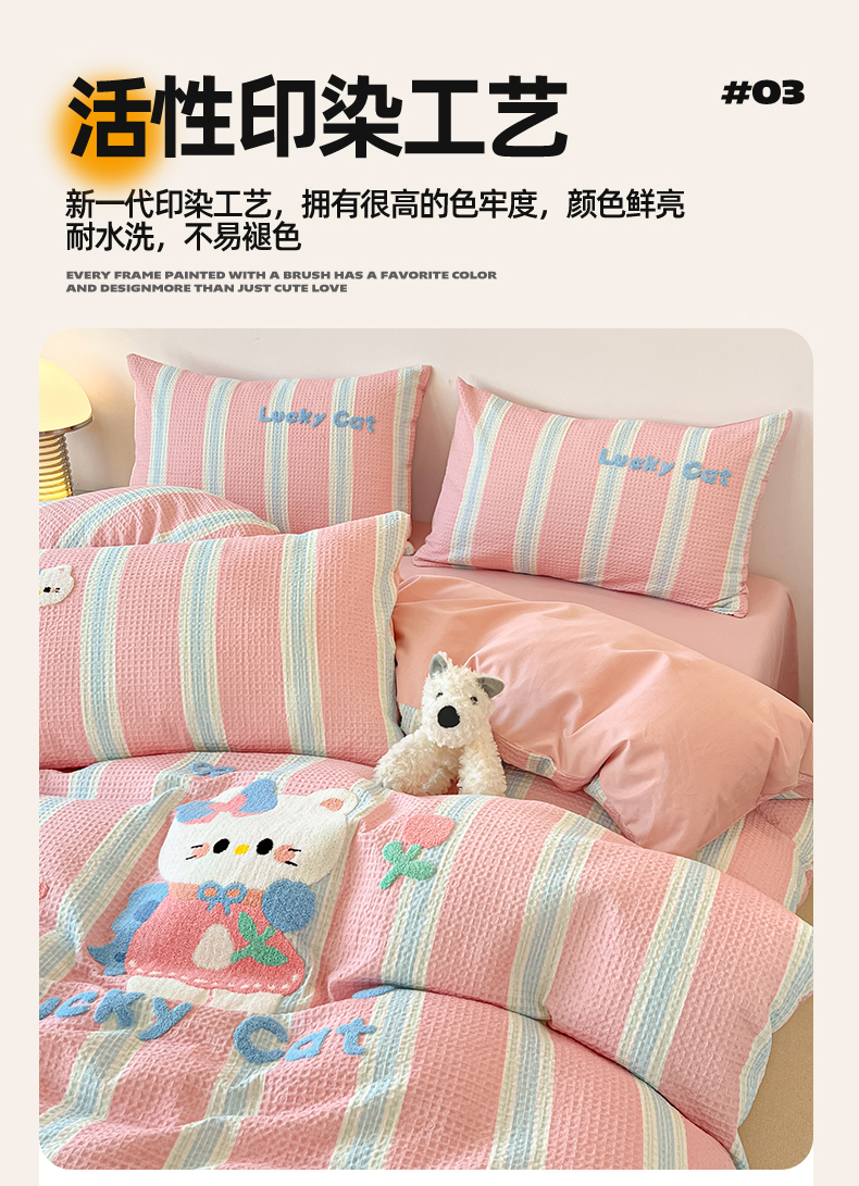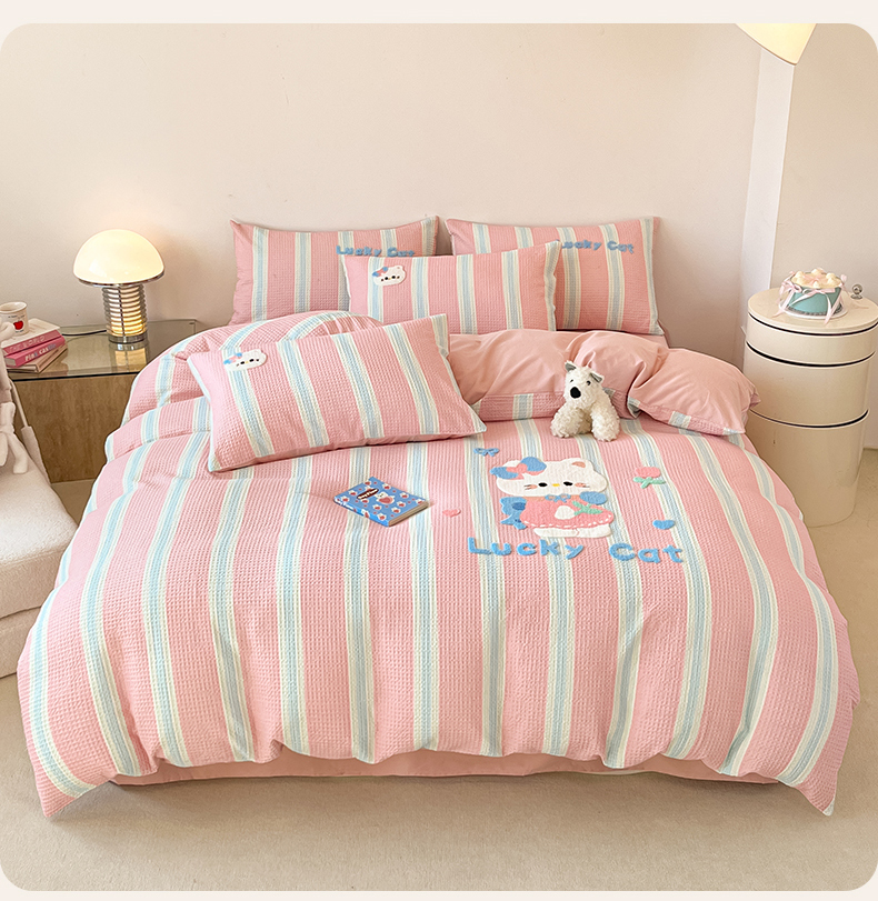 当前位置: 91家纺网 > 商品网购 > 床品套件 > 四件套 > 全棉普通四件套 > 眷恋家纺 2026新款全棉纯棉A版华夫格B版40支毛巾绣四件套 咪咪小猫