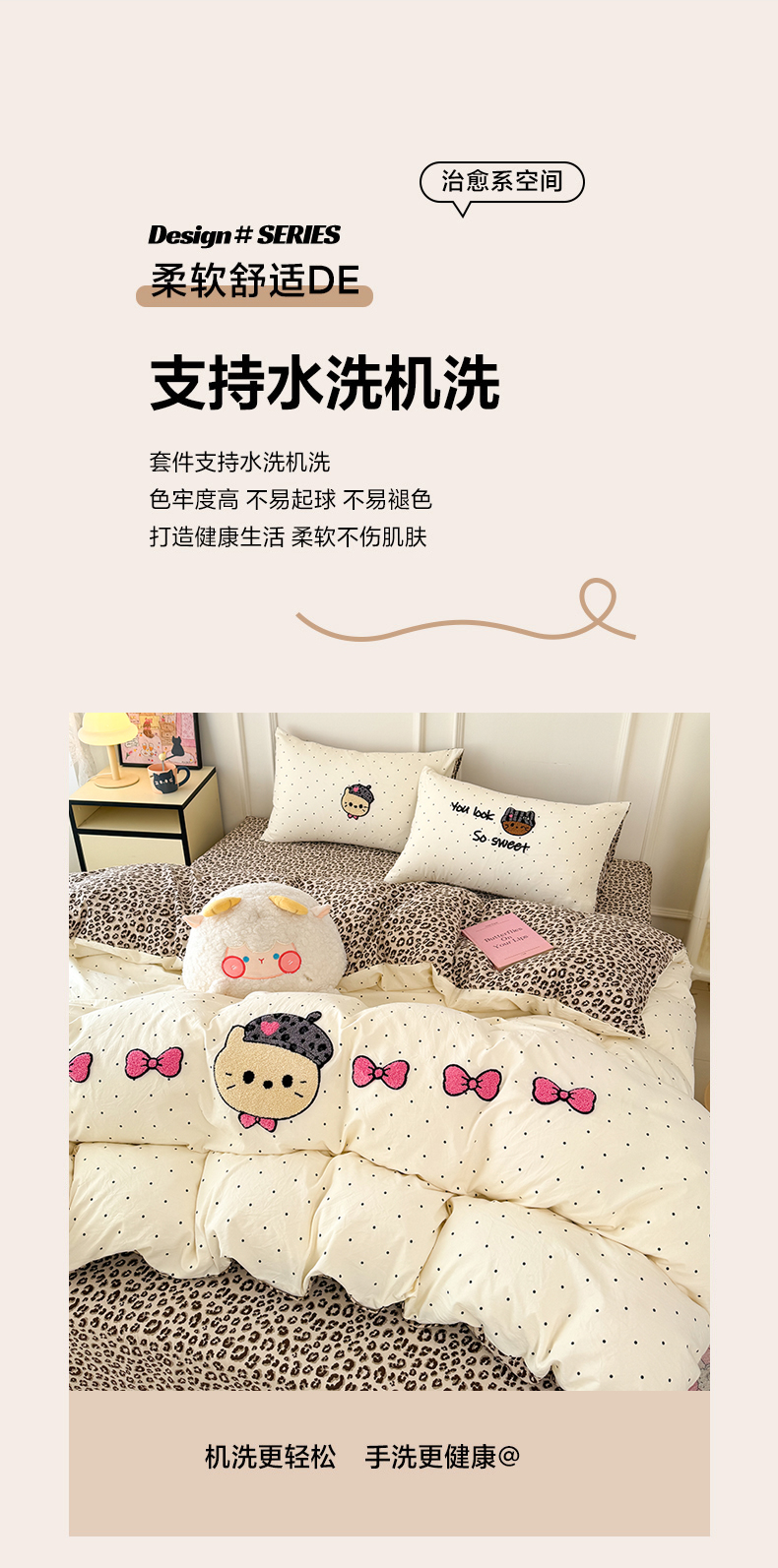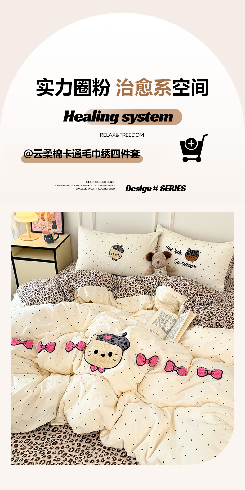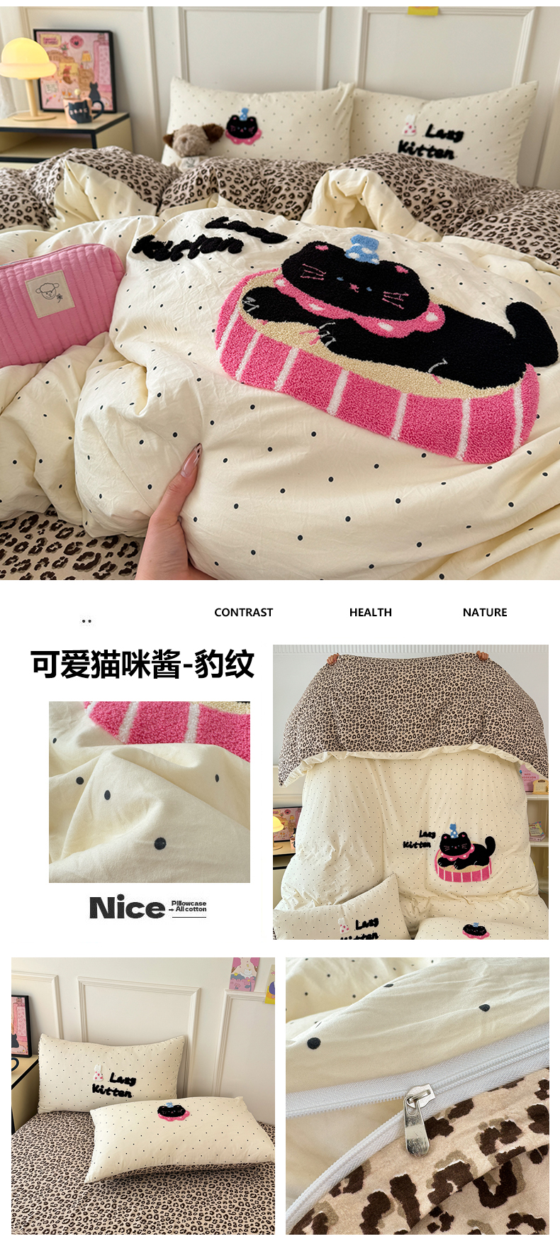 当前位置: 91家纺网 > 商品网购 > 床品套件 > 四件套 > 毛巾绣四件套 > 三朵家纺 2026春夏新款云柔棉水洗棉毛巾绣四件套 蝴蝶结小猫-豹纹