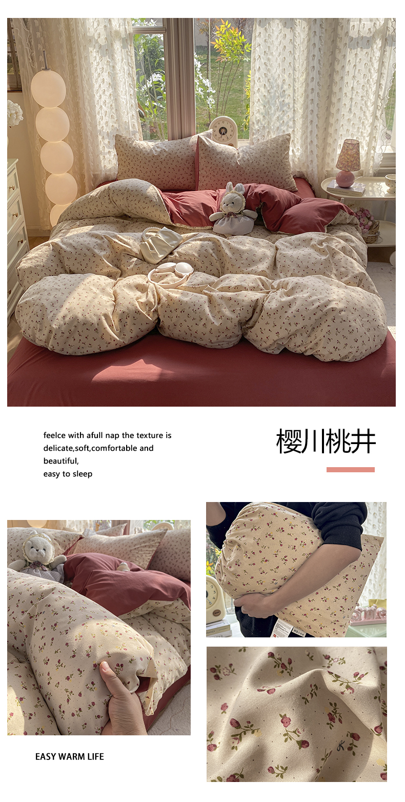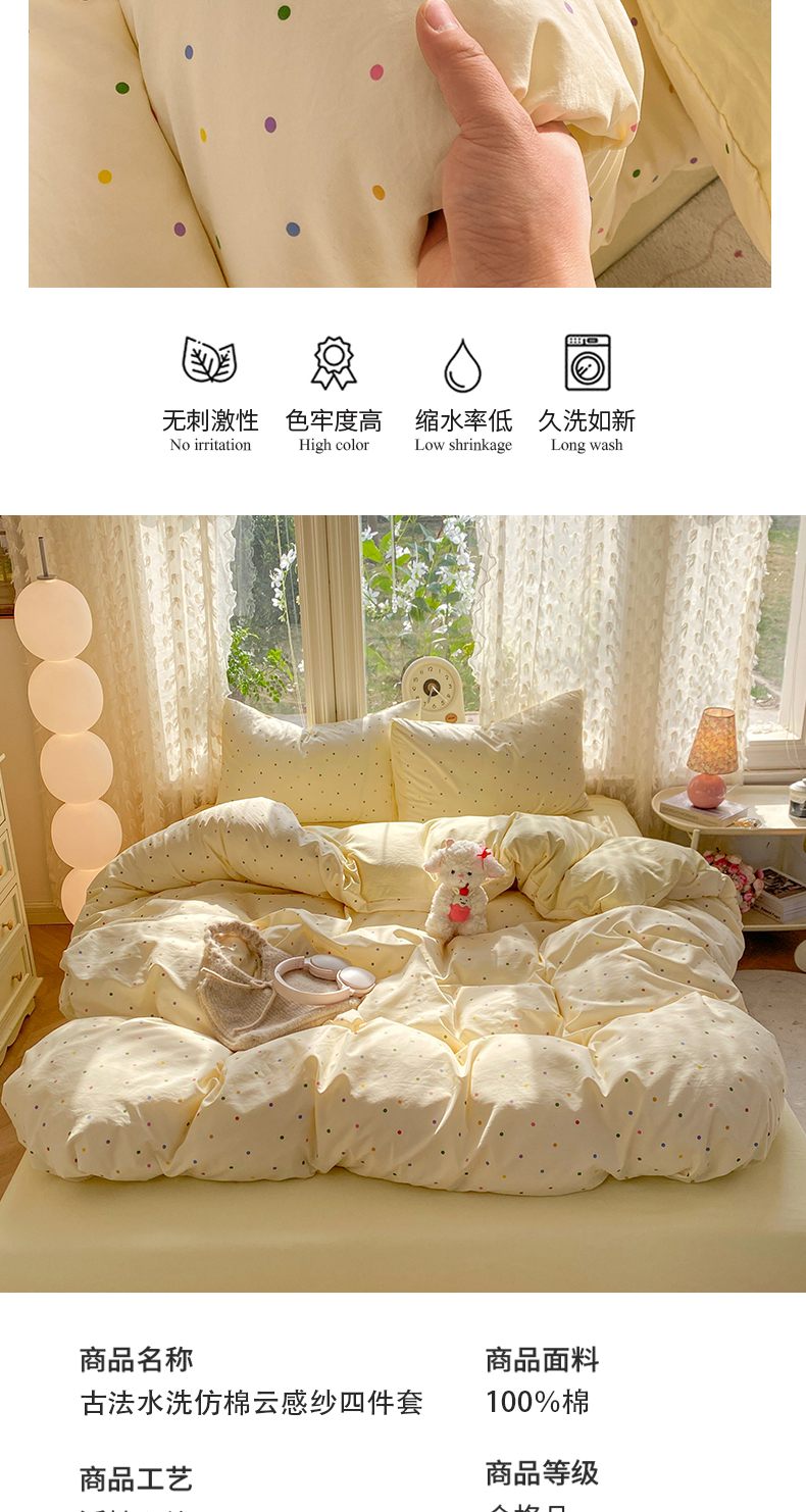 (总)豫见家纺 2026新款古法水洗仿棉云感纱四件套,小鱼心事,爱心格纹,安妮碎花,豹纹咖,彩波波,彩心心,草莓点点,晨露,初夏,梵高映像,乖巧KT-粉,乖巧KT-蓝,赫莲娜,灰条樱桃,吉米兔-灰,吉米兔-紫,浆果,兰枝玉树,梦屿,秘密花园,蜜恋樱桃,木马乐园,南瓜派,千野合,甜心乐园,晚安小星星,夏日初恋,小黄花,小猫钓鱼,小幸福,樱川桃井,知秋
