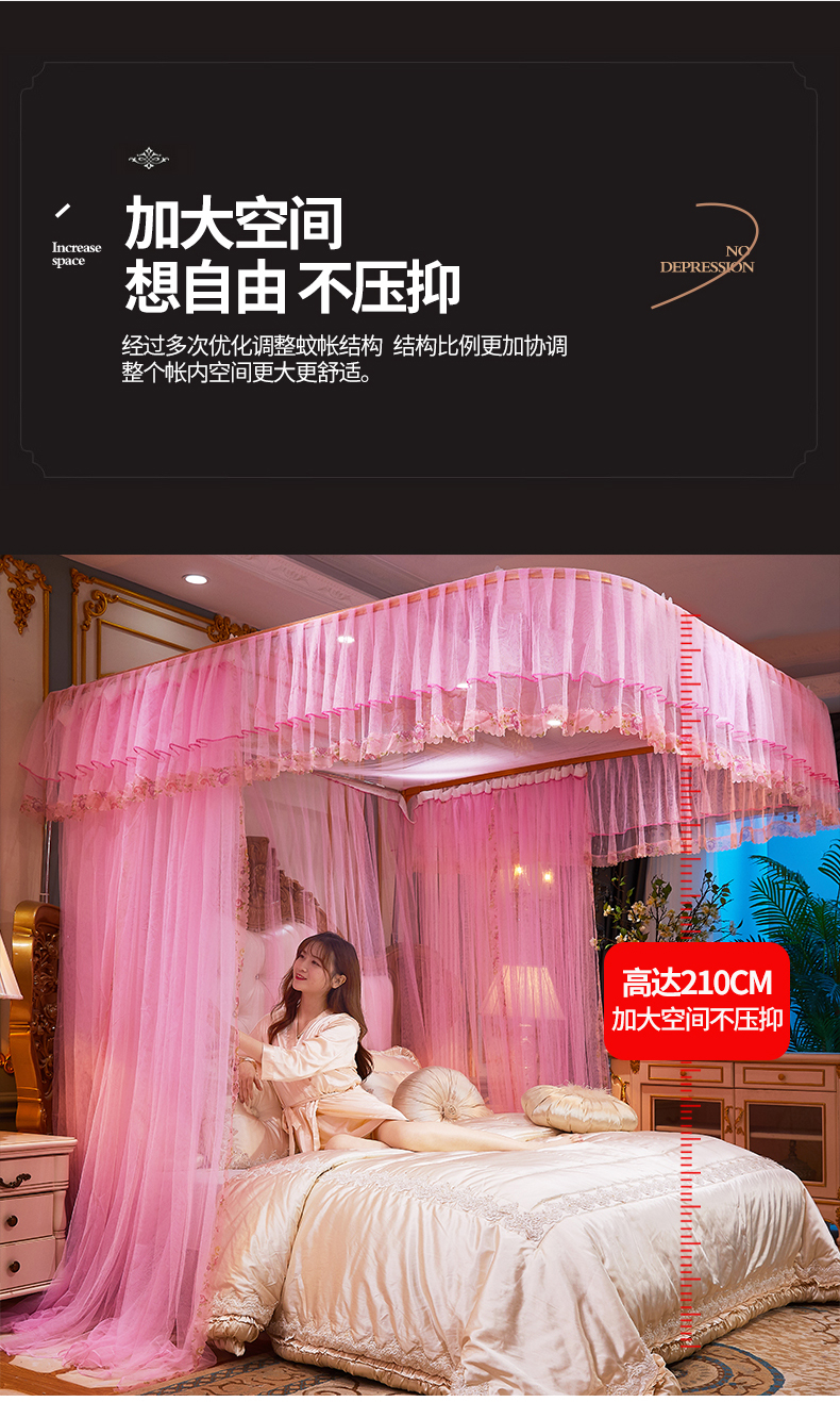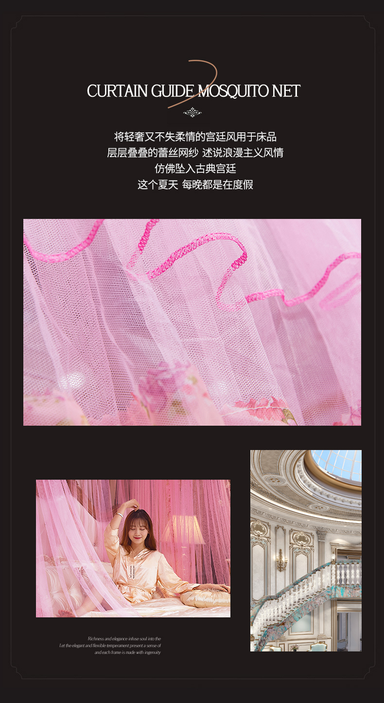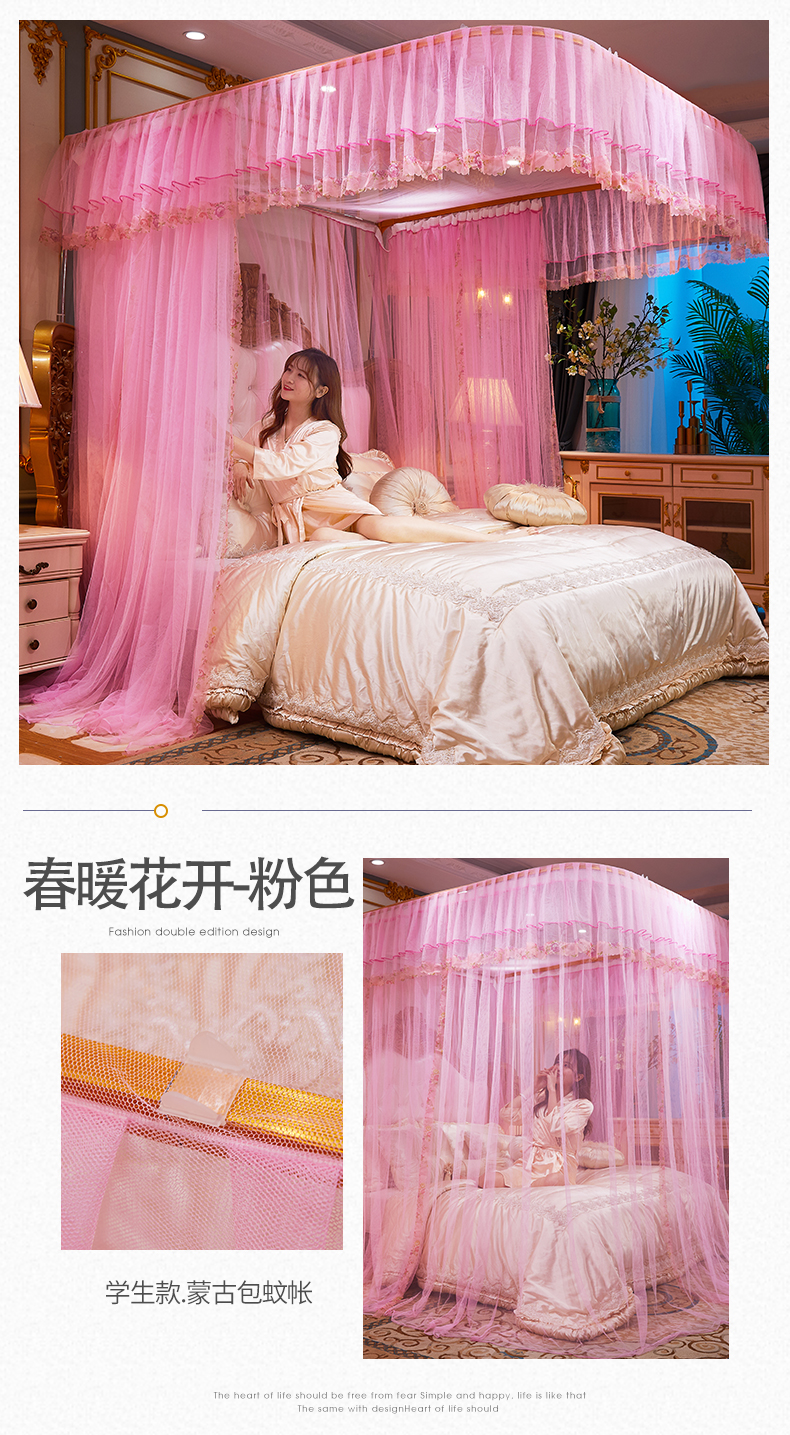 商品名称:舞夜盛世 2026新款u型拉幕导轨蚊帐轨道蚊帐落地宫廷蚊帐—春暖花开 春暖花开-粉色