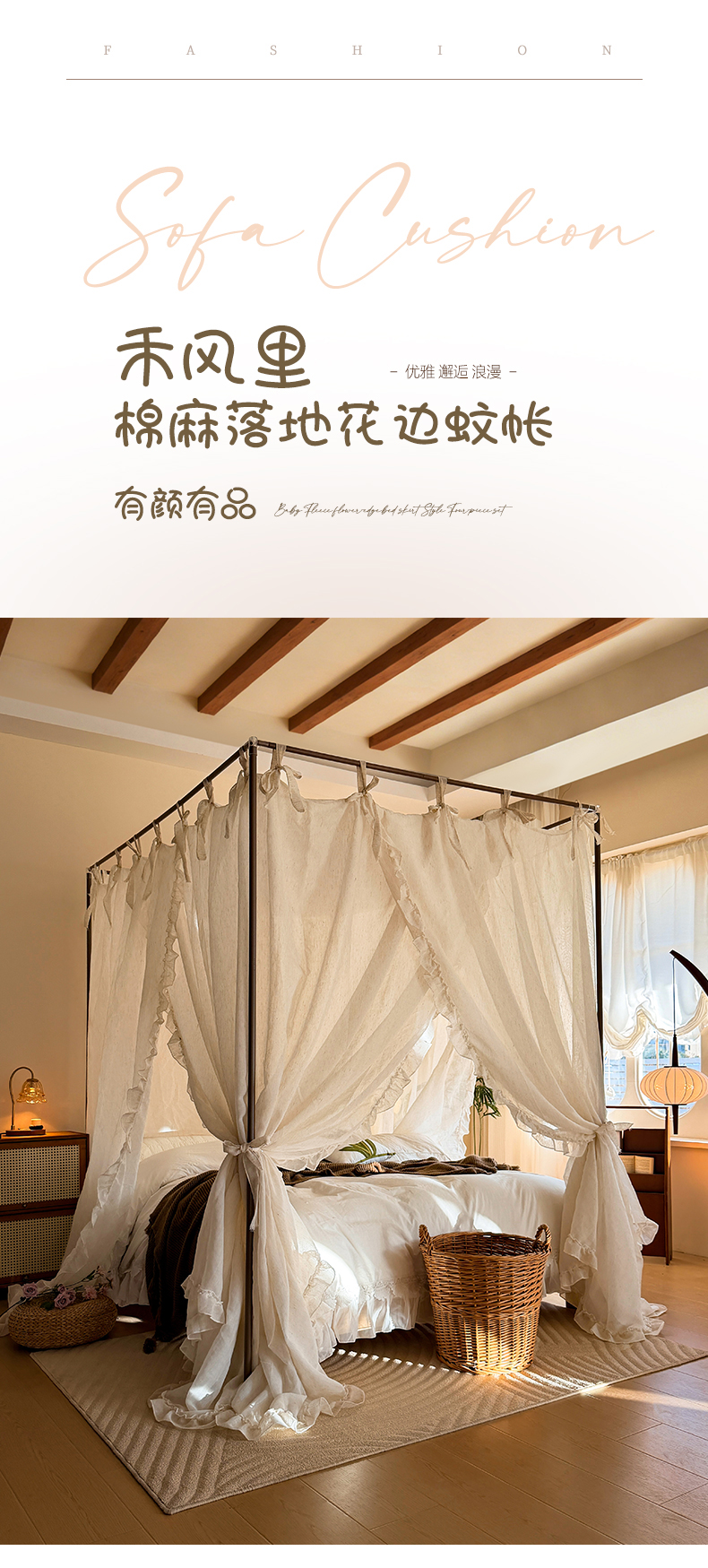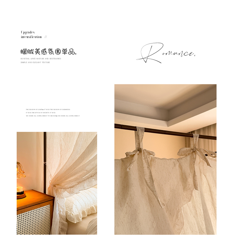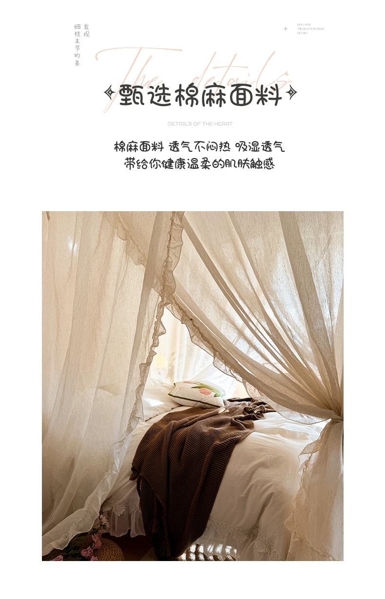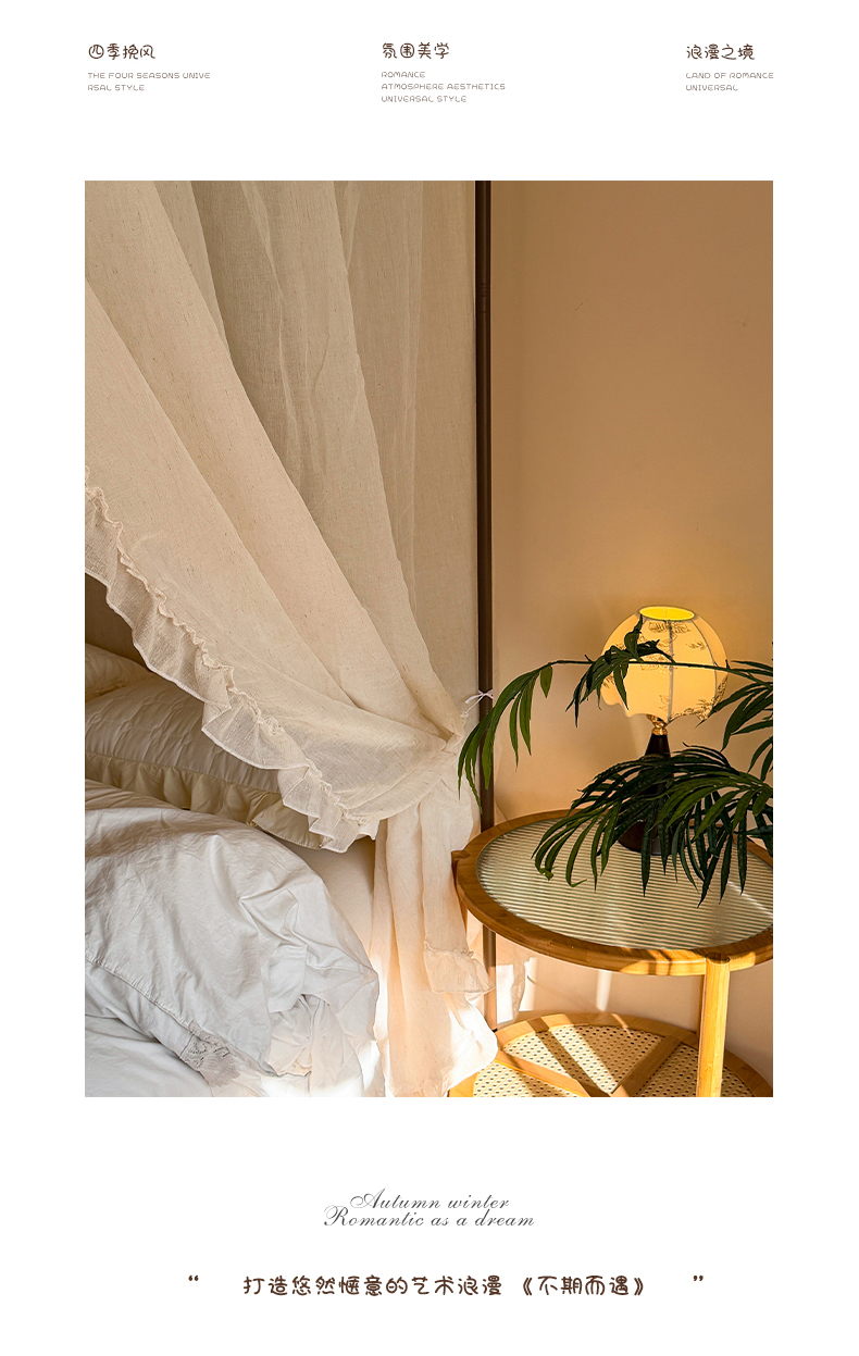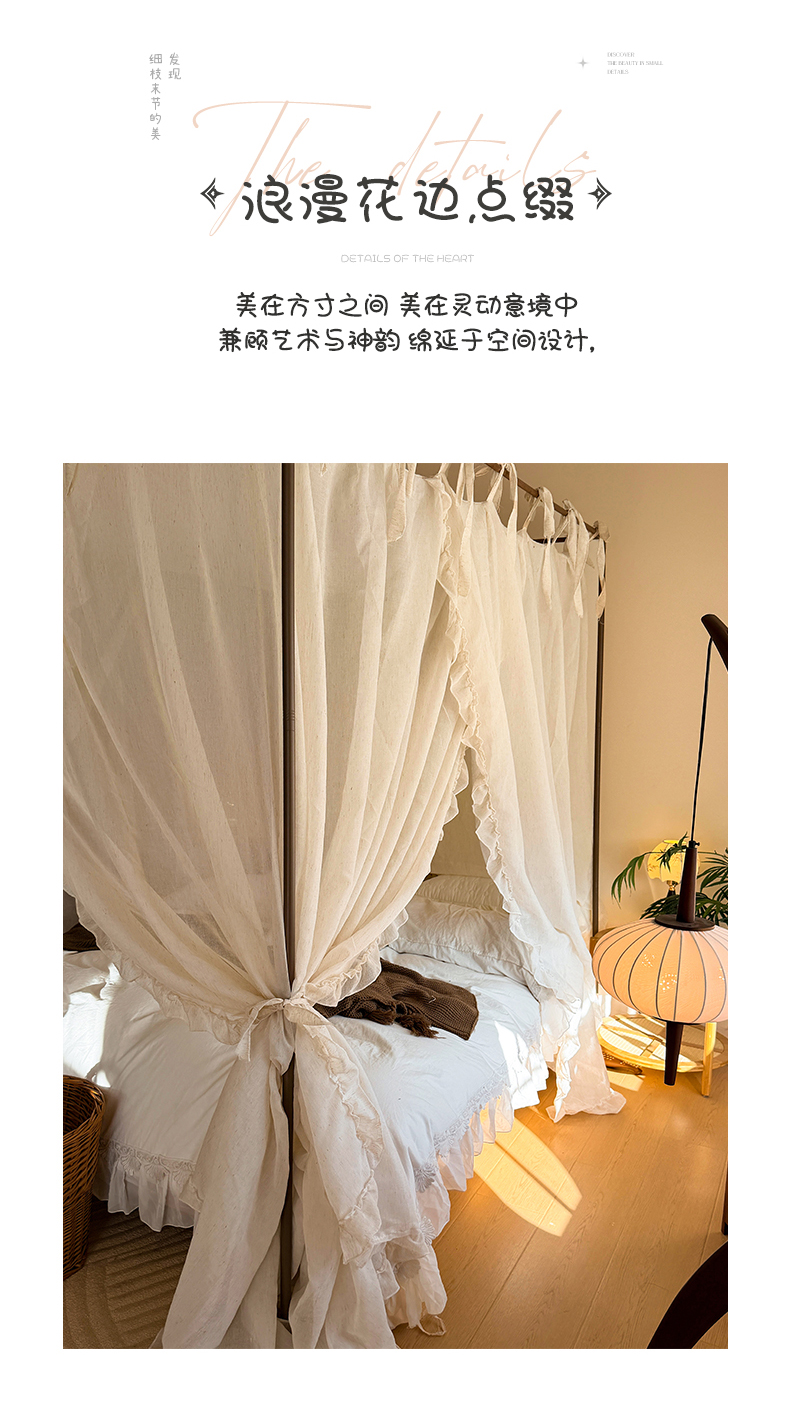 当前位置: 91家纺网 > 商品网购 > 床上用品 > 蚊帐 > 宫廷蚊帐 > (总)都市缘蚊帐 2026新款905系列禾风里棉麻落地宫廷蚊帐