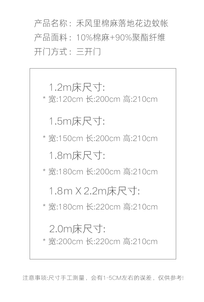 1.8x2.2m单帐纱 | ¥190.00 |