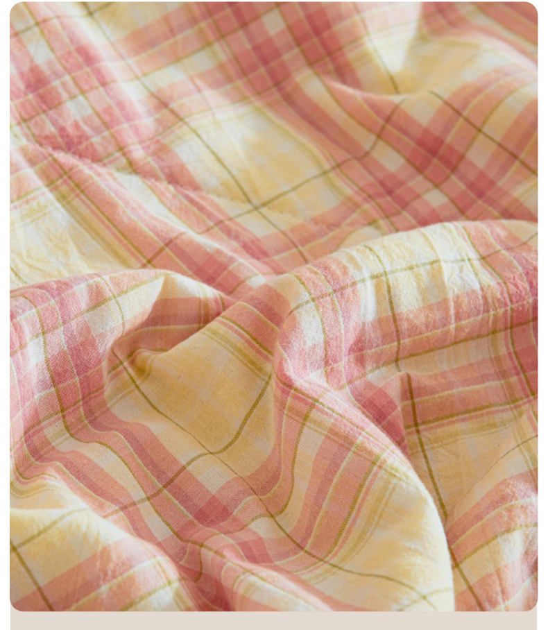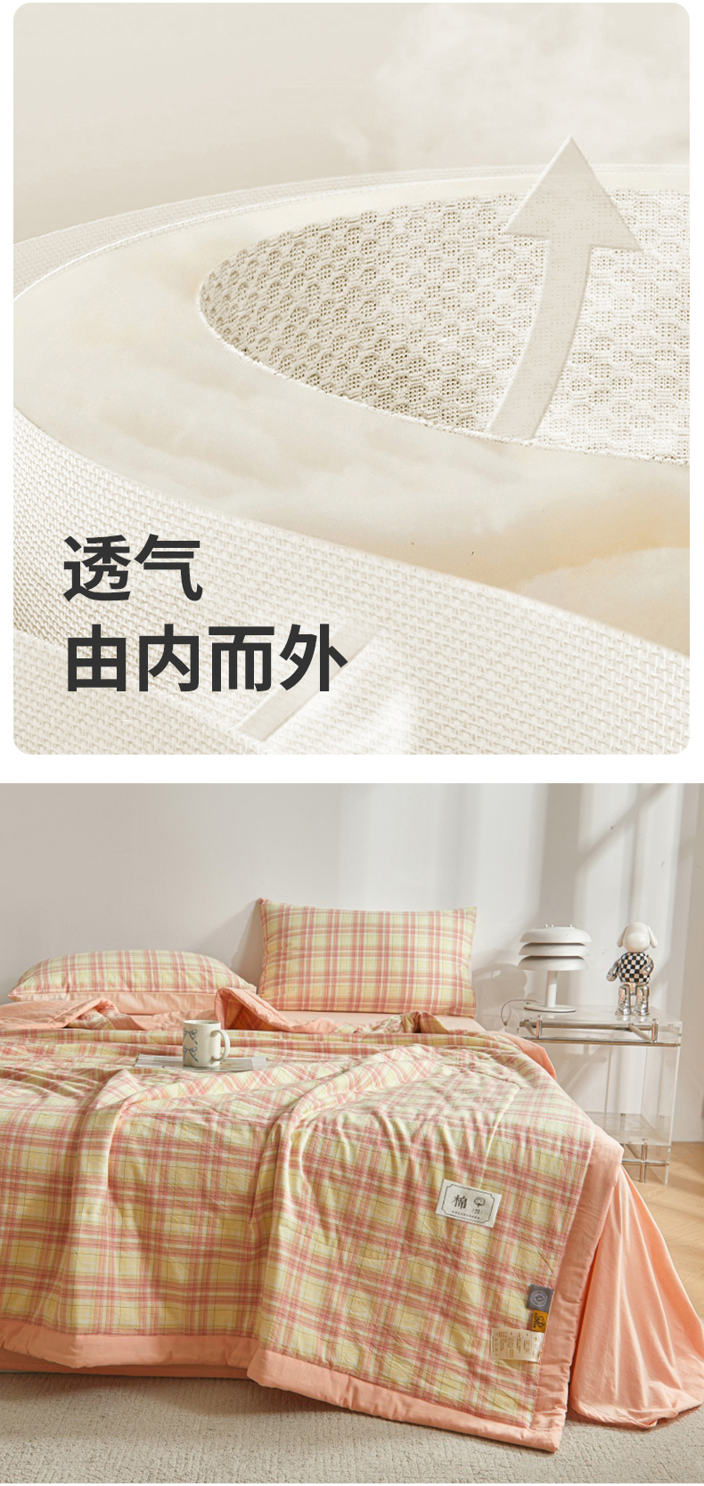 爱屋及屋 2026新款无印风新疆棉花夏被夏凉被被子被芯 柠檬粉格