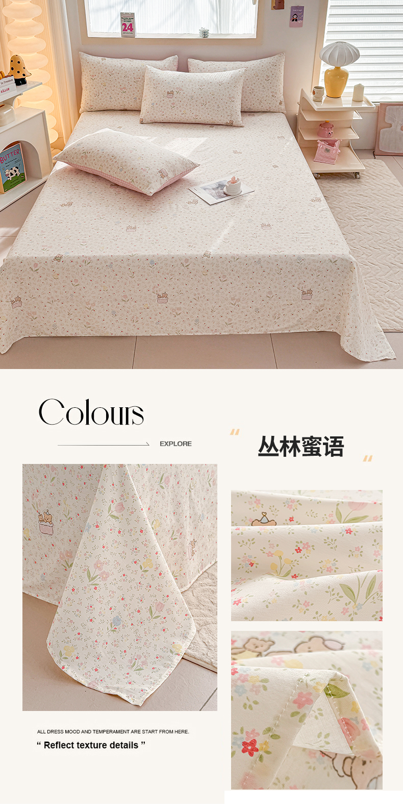 当前位置: 91家纺网 > 商品网购 > 床上用品 > 床单 > 小蓝孩家纺 2026新款12868全棉印花单床单(联系商家可打折,尺寸可定制) 丛林蜜语