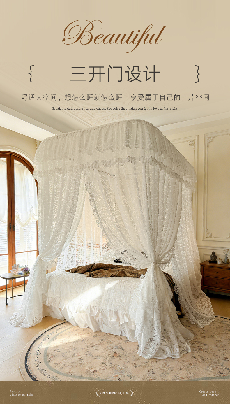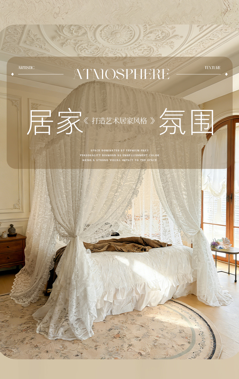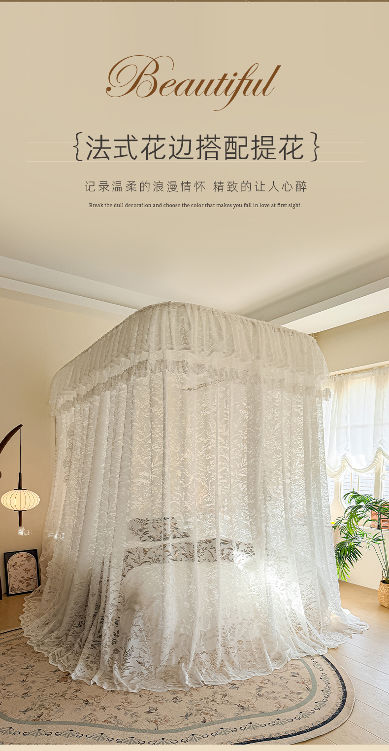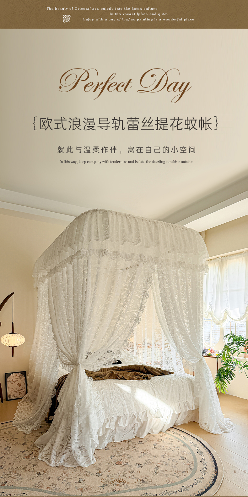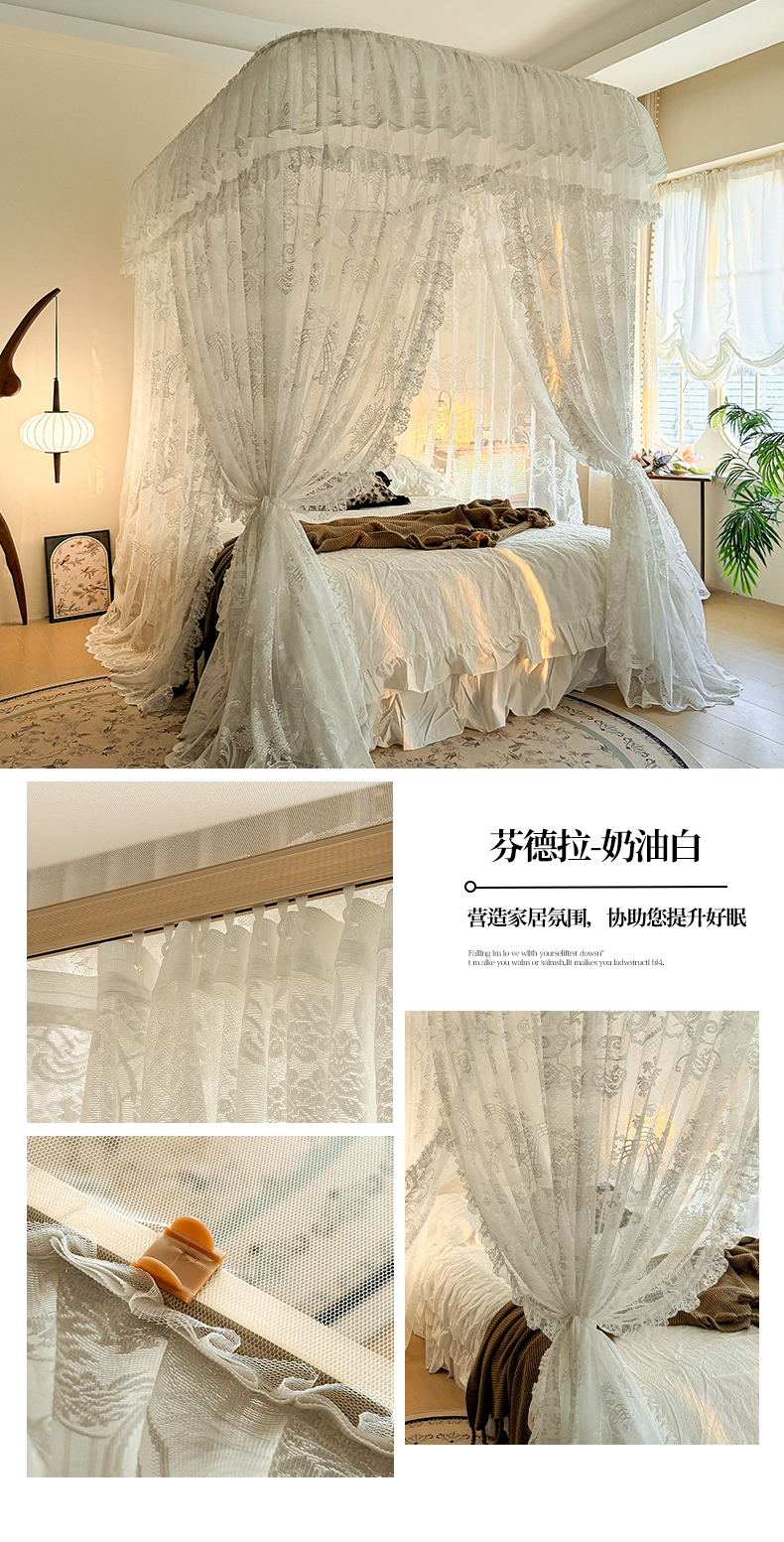 商品名称:都市缘蚊帐 2026新款浪漫303新款欧式蕾丝轨道蚊帐 盛夏-奶油白