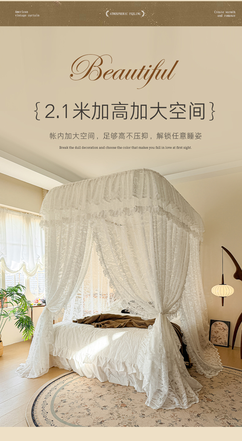 (总)都市缘蚊帐 2026新款浪漫905多丽棉纱落地宫廷蚊帐,麦芽杏-场景1,麦芽杏-场景2,粉扑色,摩卡,云雾白