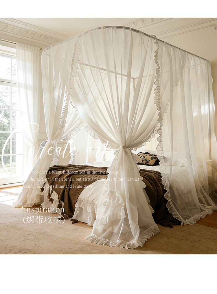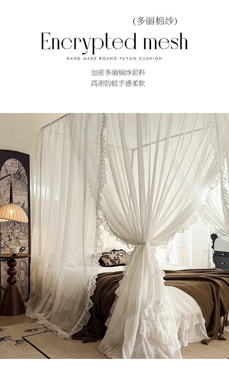 (总)都市缘蚊帐 2026新款浪漫905多丽棉纱落地宫廷蚊帐,麦芽杏-场景1,麦芽杏-场景2,粉扑色,摩卡,云雾白