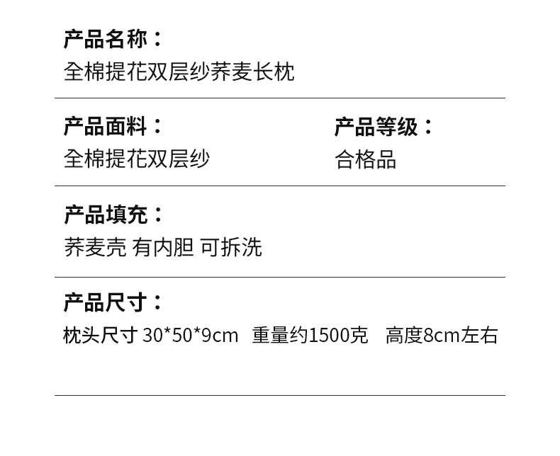 商品名称:(总)仁宇枕业 2026新款全棉提花双层纱宽边长款荞麦枕头枕芯