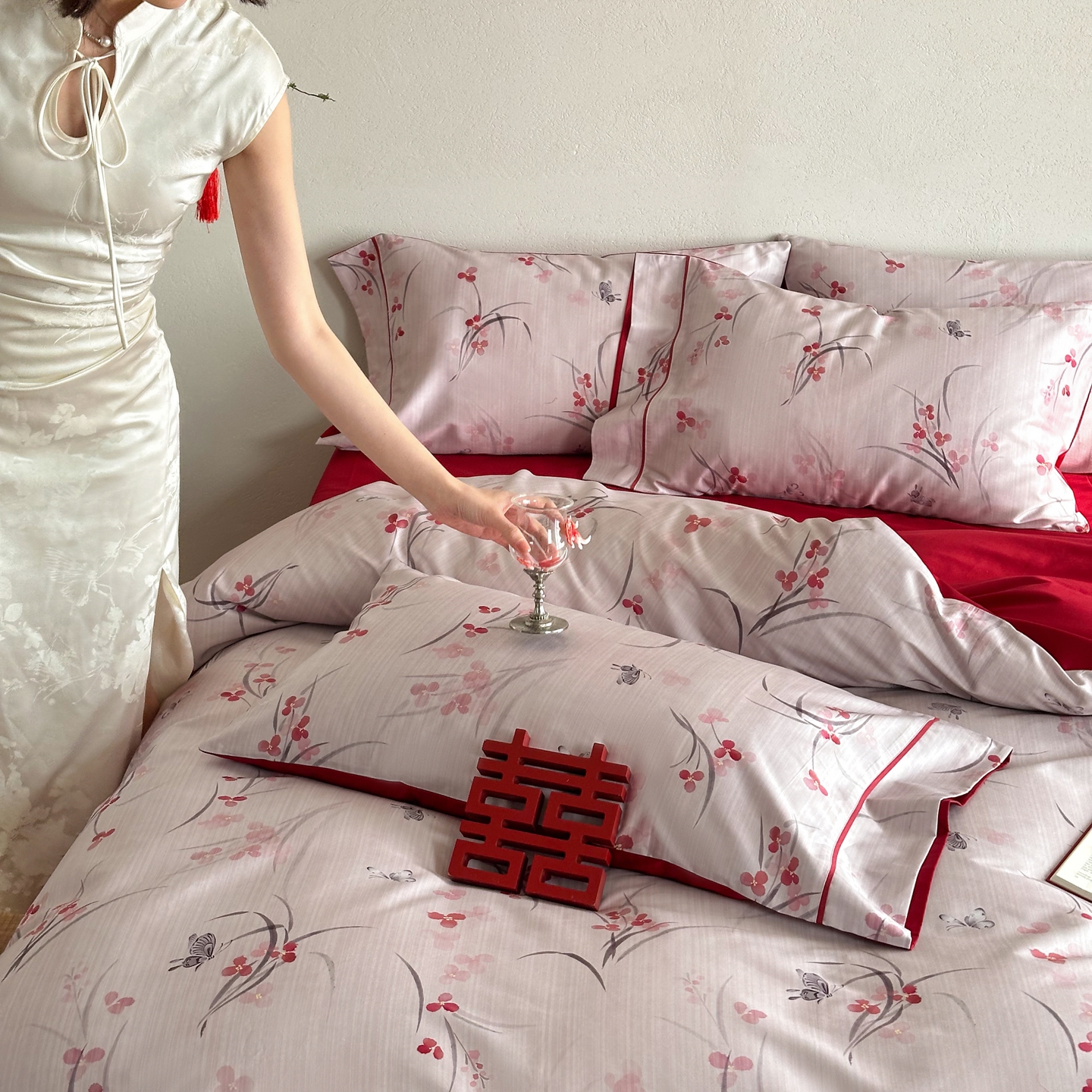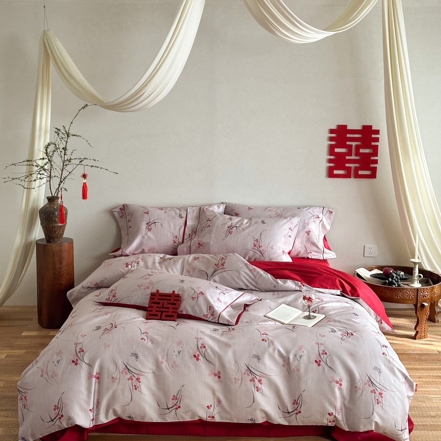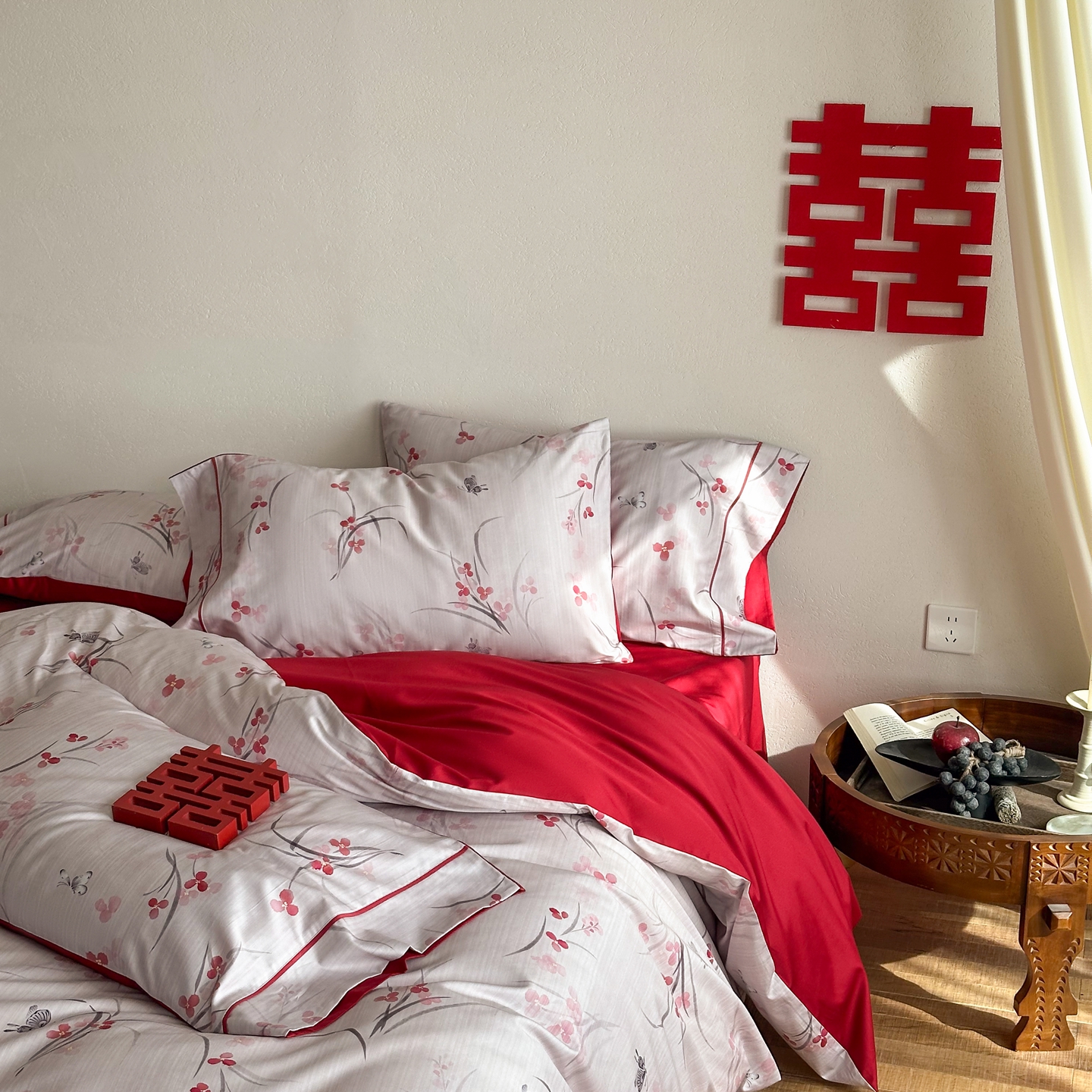 (总)西西家居 2026春夏新款100S长绒棉纯棉高精密绣花四件套-春日来信(含精致红色礼盒),春日来信