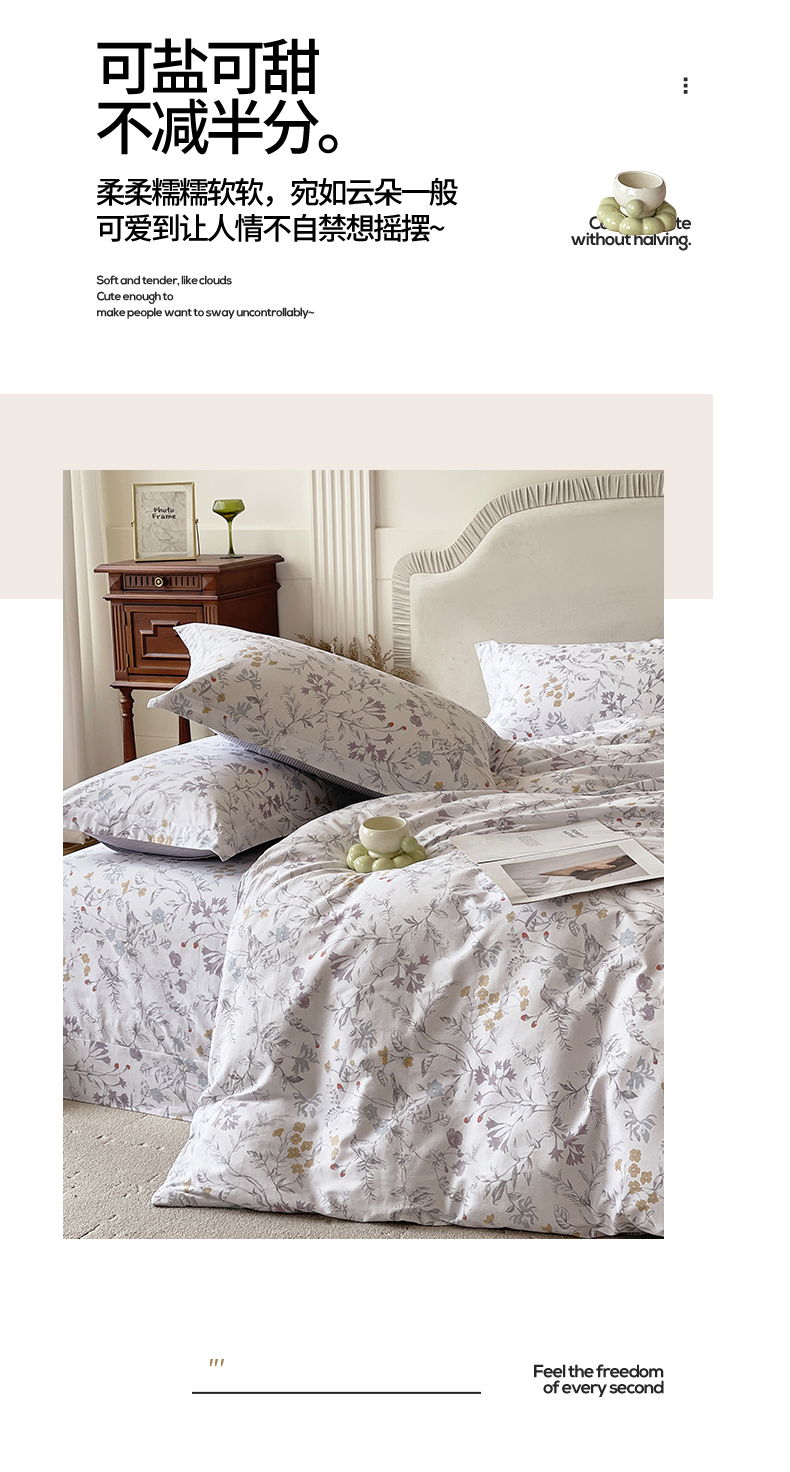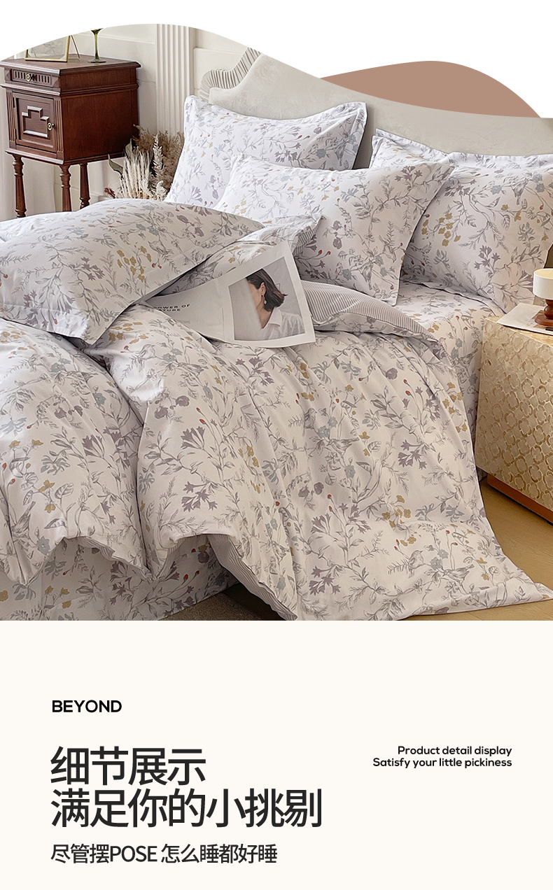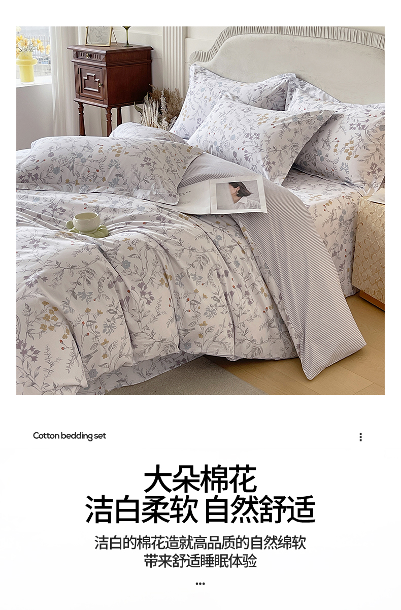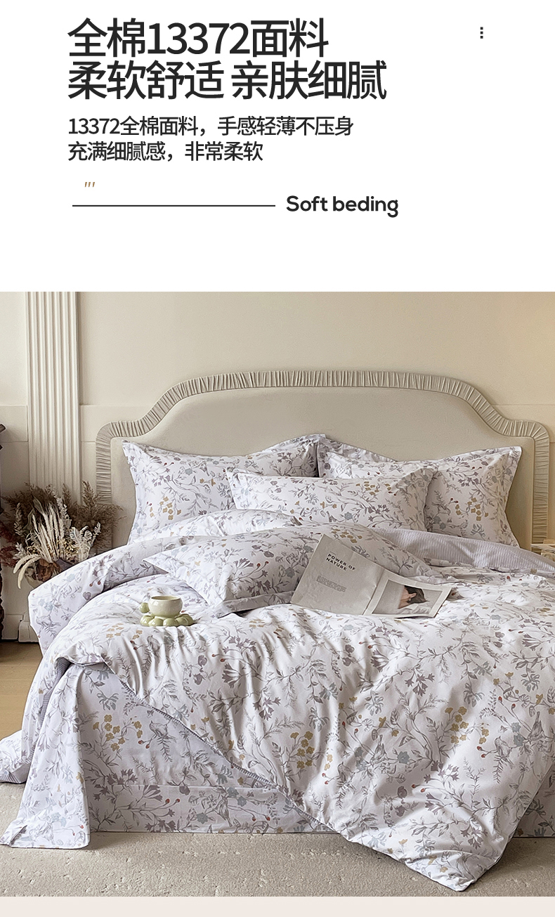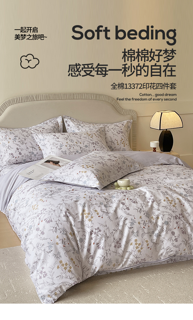 当前位置: 91家纺网 > 商品网购 > 床品套件 > 四件套 > 全棉普通四件套 > 宝齐莱家纺 2026新款全棉纯棉13372印花四件套 花解语
