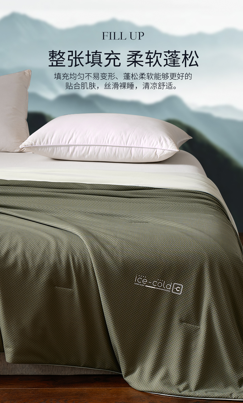 鸣升家纺 2026新款氨纶提花凉感丝夏被西瓜被空调被冰淇淋夏凉被空调被 冰感-绿