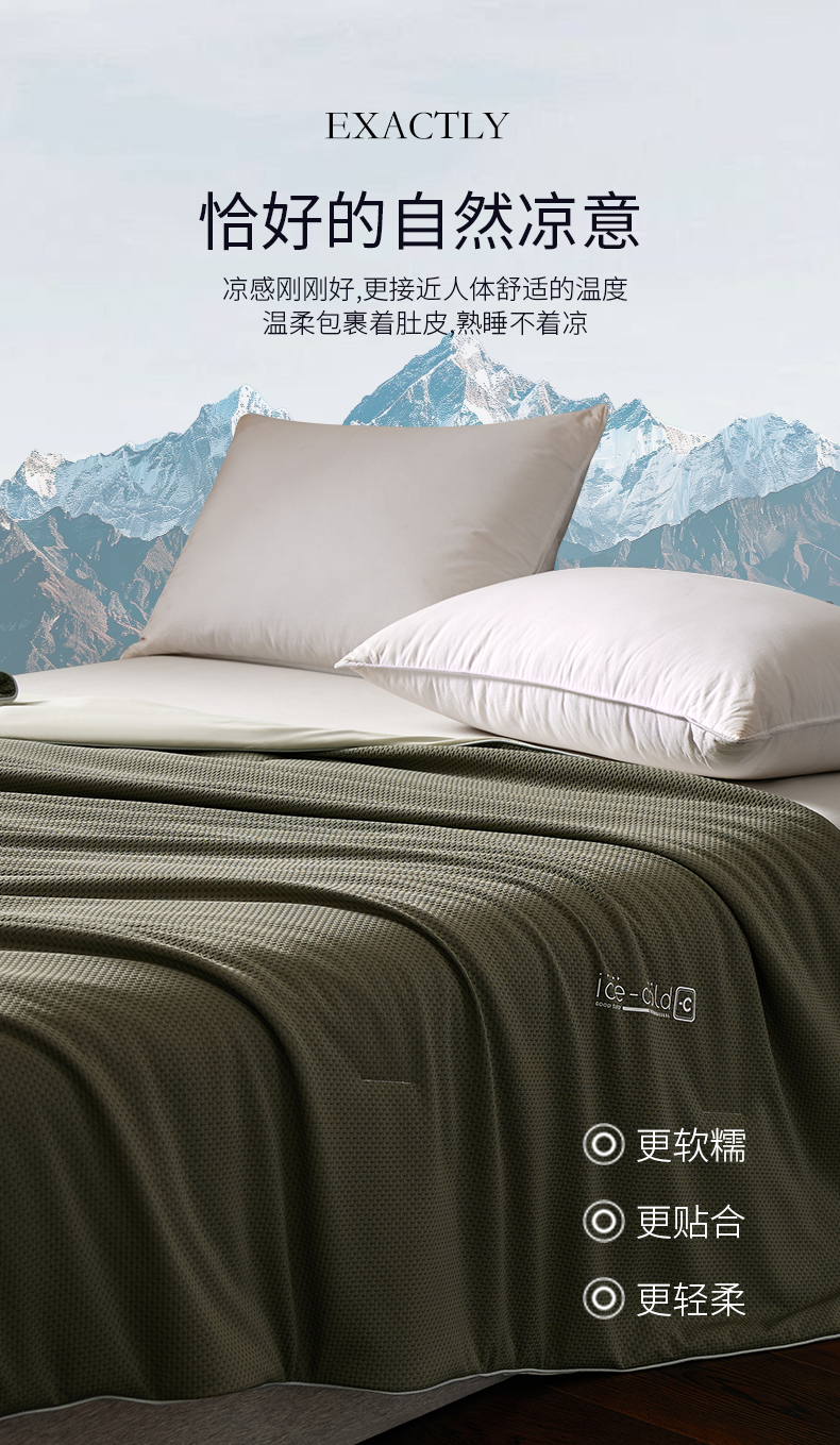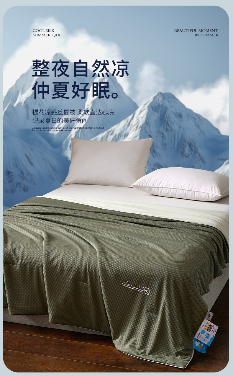 商品名称:鸣升家纺 2026新款氨纶提花凉感丝夏被西瓜被空调被冰淇淋夏凉被空调被 冰感-绿