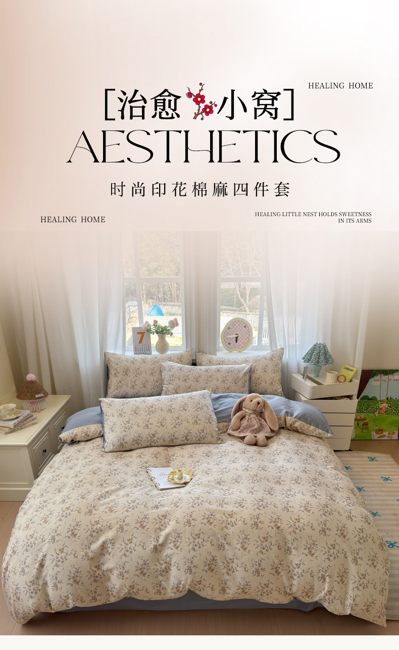 当前位置: 91家纺网 > 商品网购 > 床品套件 > 四件套 > 全棉普通四件套 > 如意朵 2026新款全棉棉麻印花四件套 墨韵