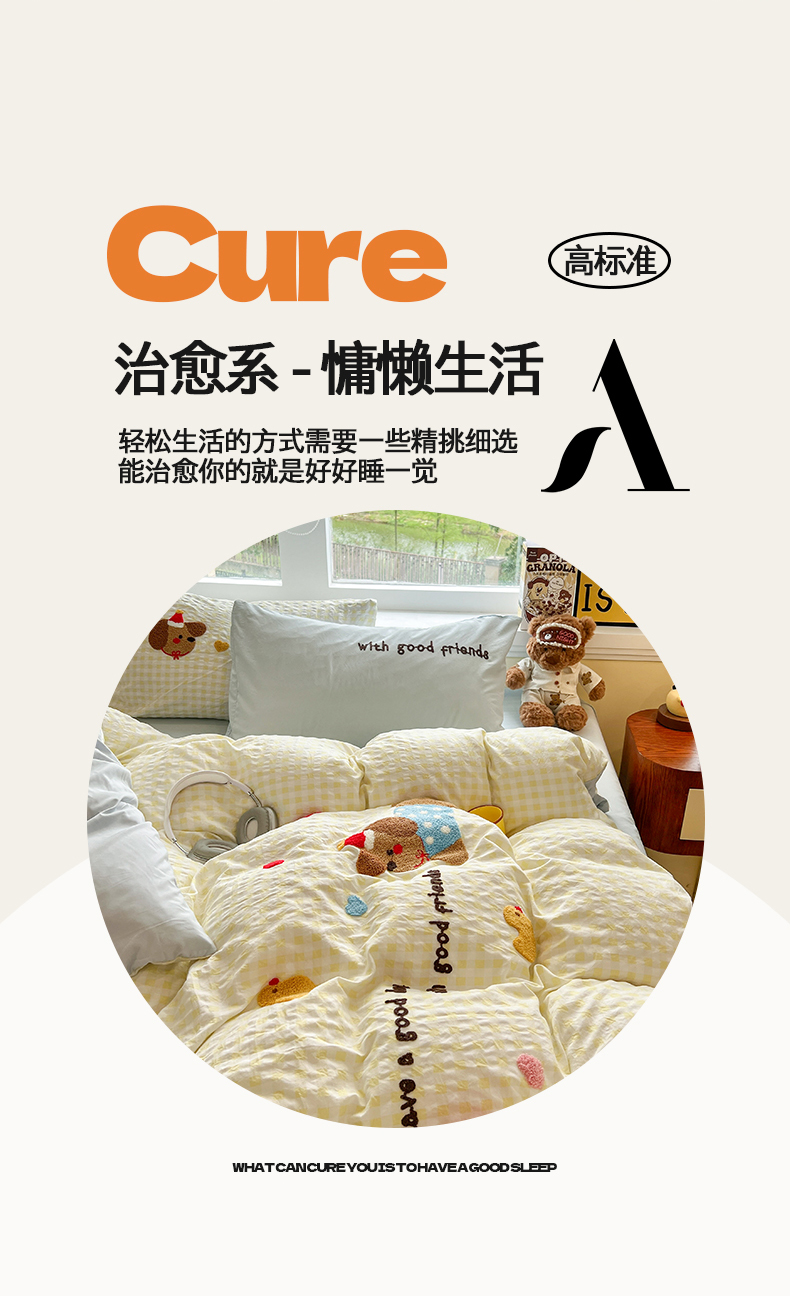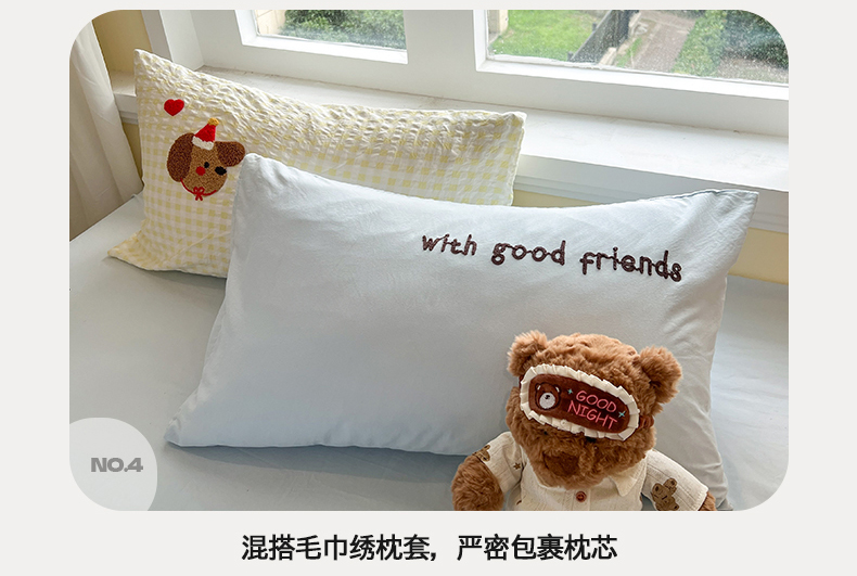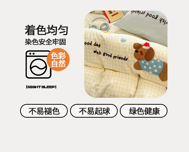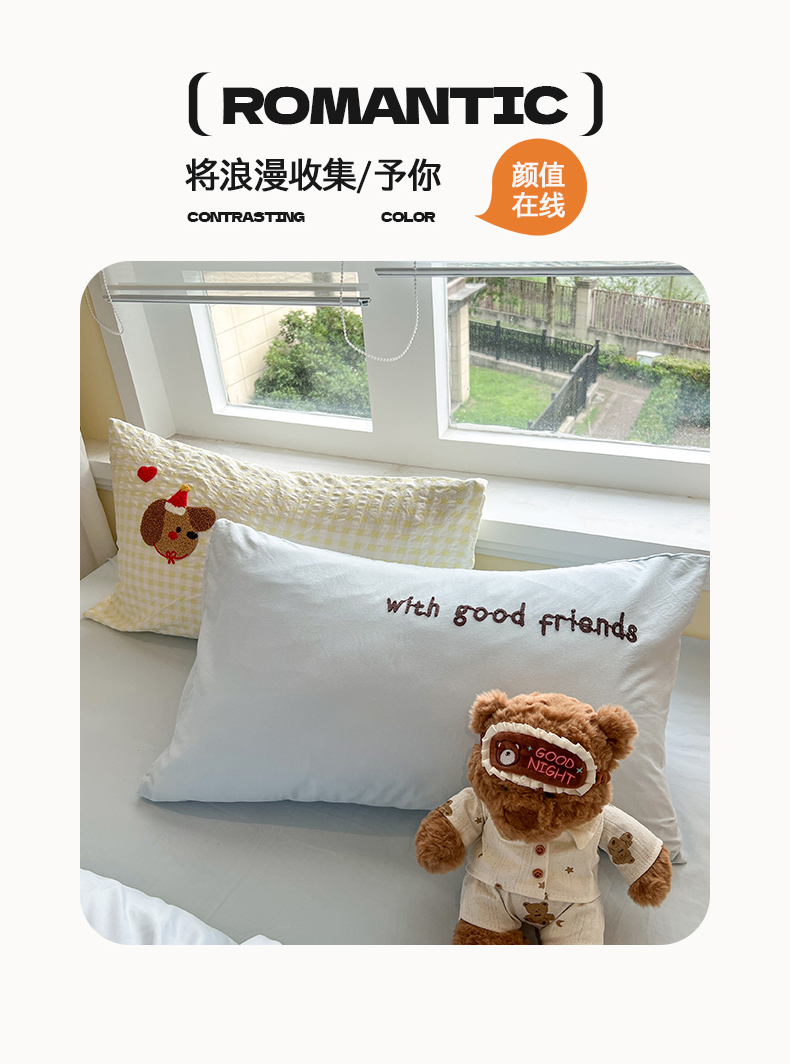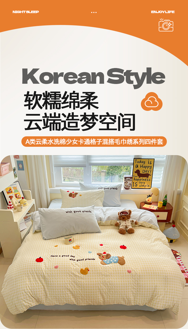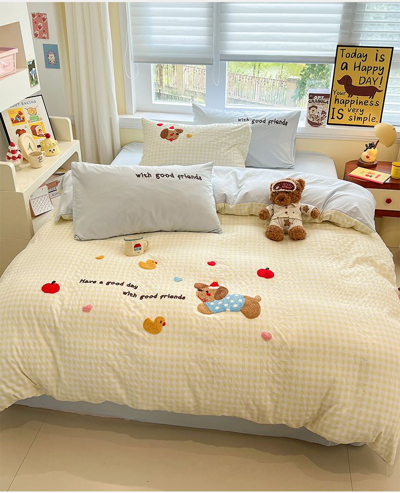 当前位置: 91家纺网 > 商品网购 > 床品套件 > 四件套 > 毛巾绣四件套 > 桃心家居 2026新款A类亲肤舒适软糯云柔水洗棉少女卡通格子混搭毛巾绣水洗棉系列四件套 云柔水洗棉-毛巾绣美好小腊肠