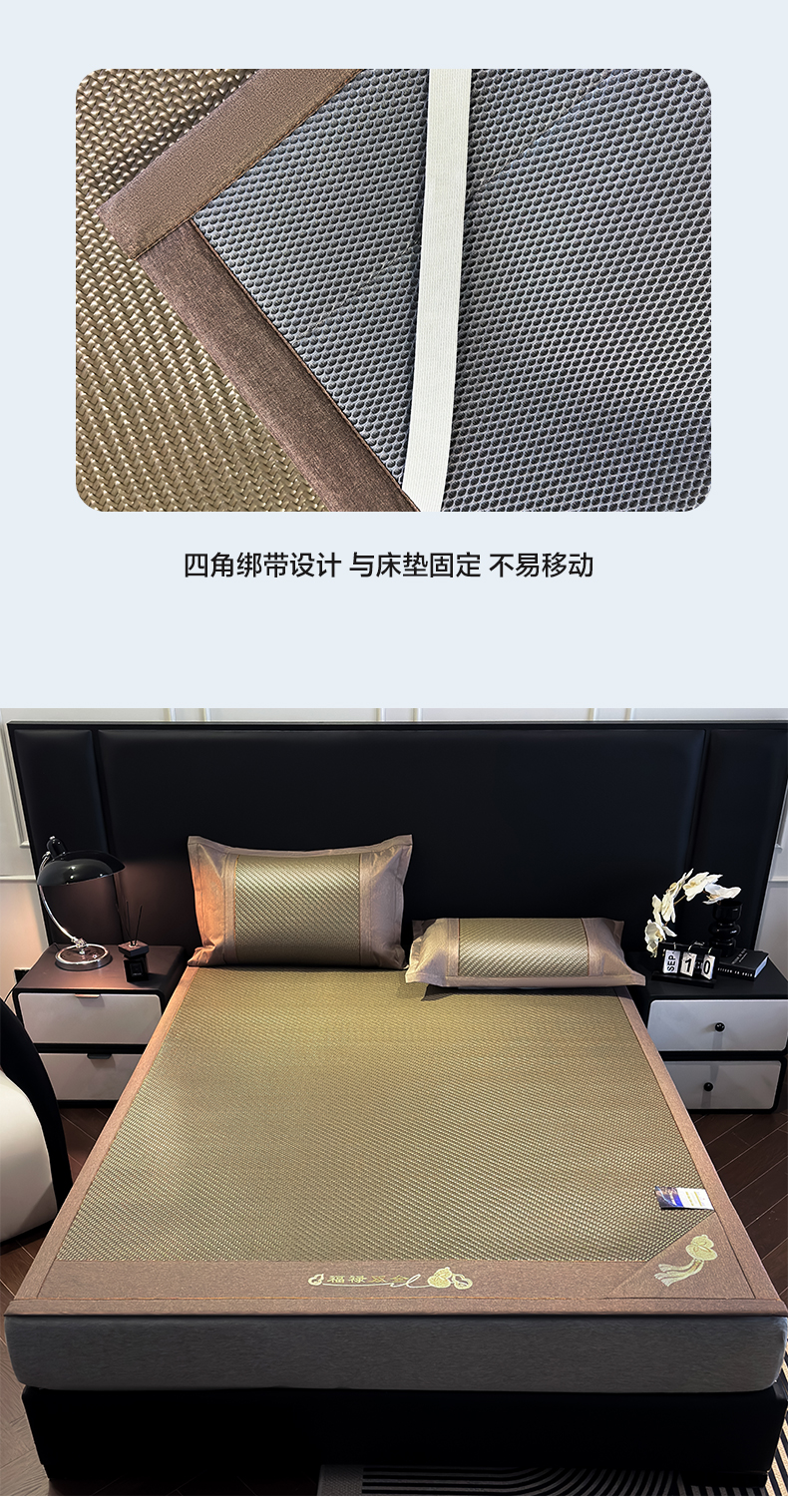 商品名称:欧邦 2026新款三层复合刺绣超冷感PE软席雪藤席子-福禄 福禄-古铜