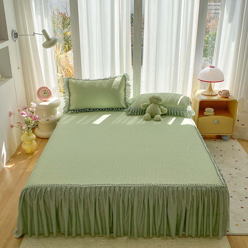 七里香 2026春夏新款2026新款华夫格3D千鸟格冰豆豆凉席床裙款三件套 华夫格-果绿,华夫格-果绿