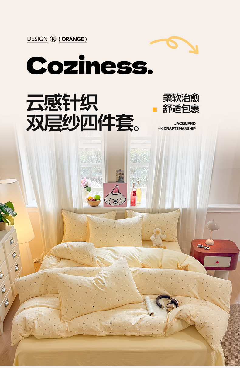 当前位置: 91家纺网 > 商品网购 > 床品套件 > 四件套 > 其它四件套 > 鑫佳居 2026新款水洗针织提花双层纱四件套 奶油甜点