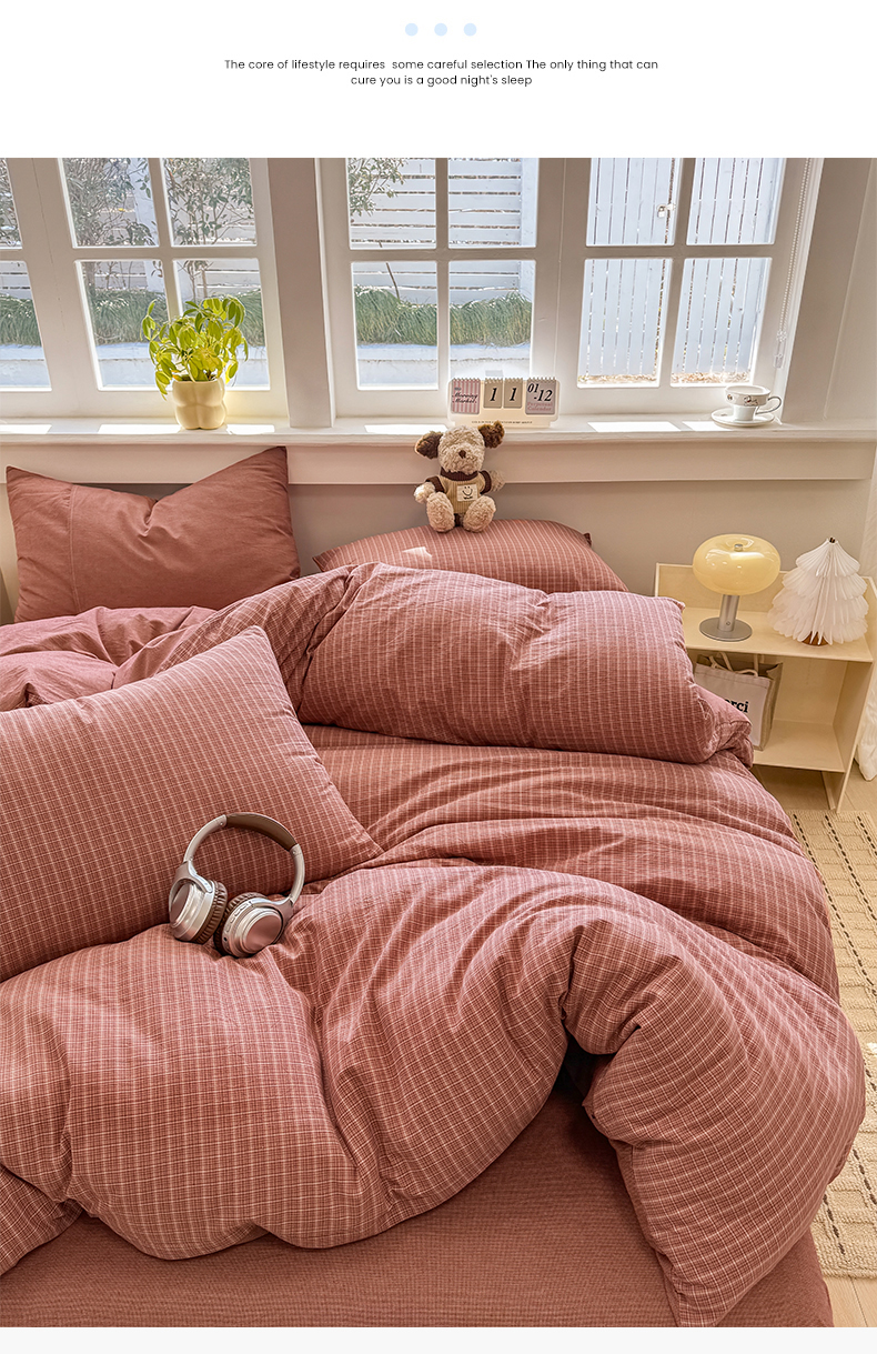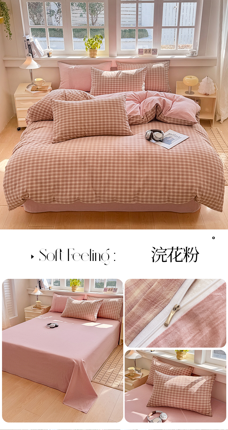 当前位置: 91家纺网 > 商品网购 > 床品套件 > 四件套 > 全棉普通四件套 > 梦依依 2026新款全棉色织水洗棉拉链款四件套 晚晴红