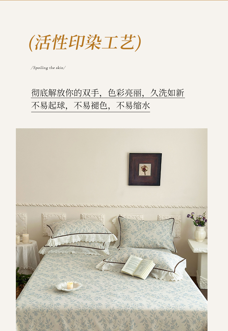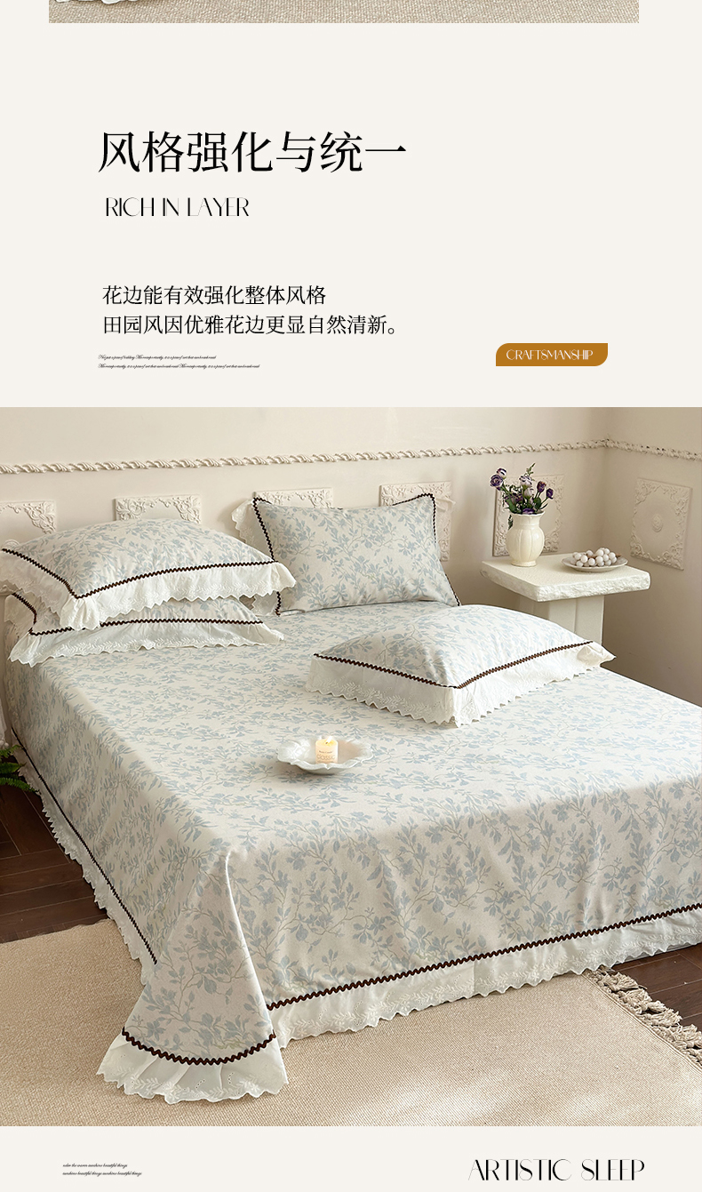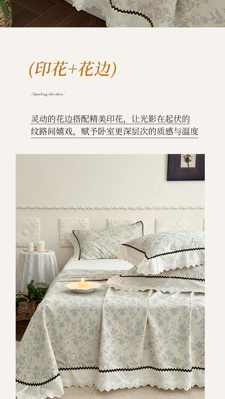 (总)乐朵家居 2026春夏 秘密花园 全棉水洗棉床单款VS夹棉床盖四件套 (控价单288夹棉388),蓝,卡其,白,玉