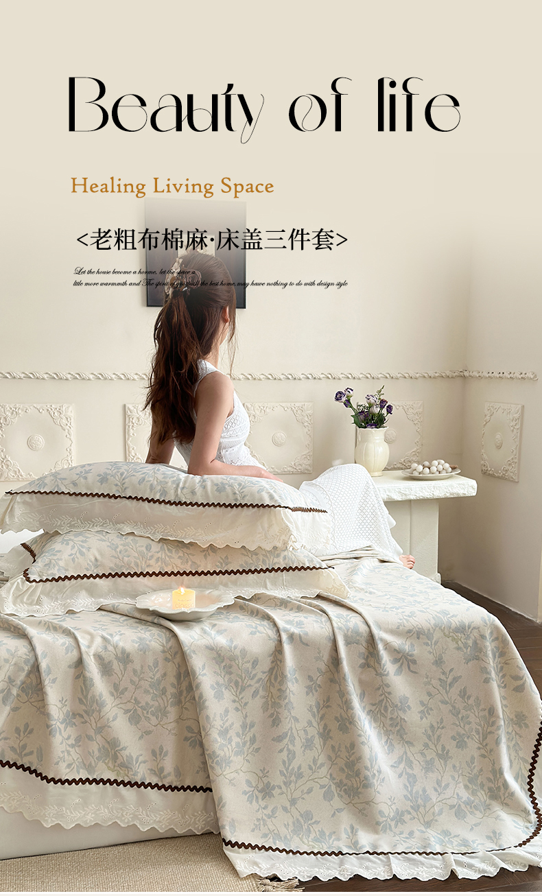 乐朵家居 2026新款棉麻老粗布三件套 沐霏
