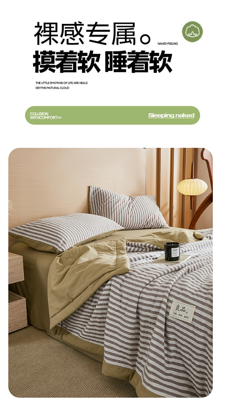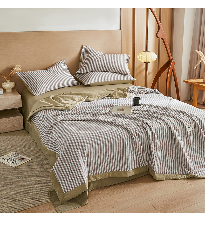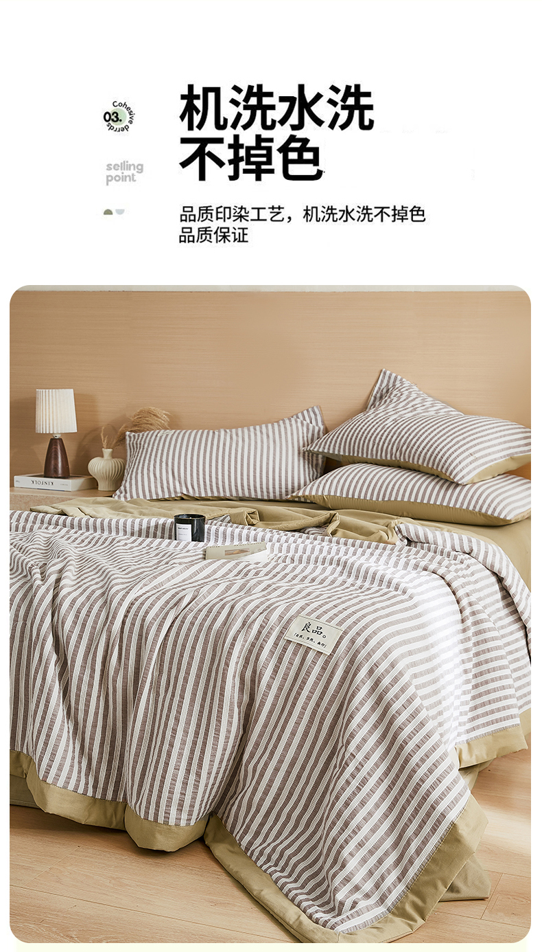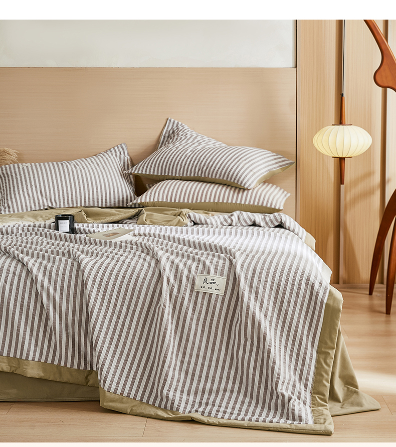 • 91家纺网 家纺一手货源 找家纺 鸣升家纺 2026新款A类全棉水洗棉条纹提花大豆纤维夏被四件套空调被 条纹提花驼