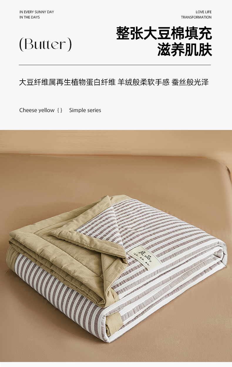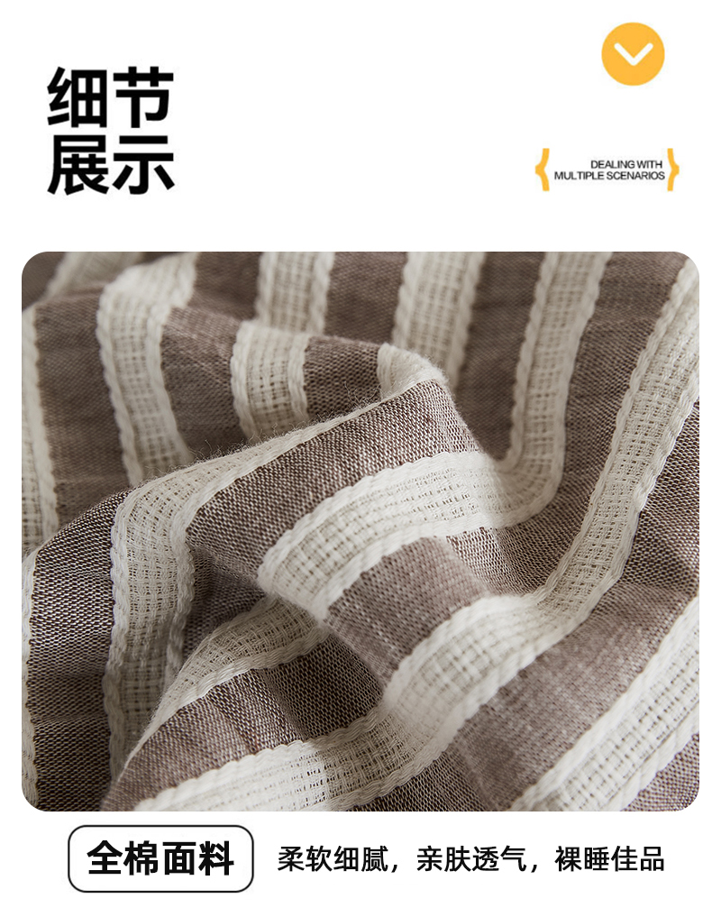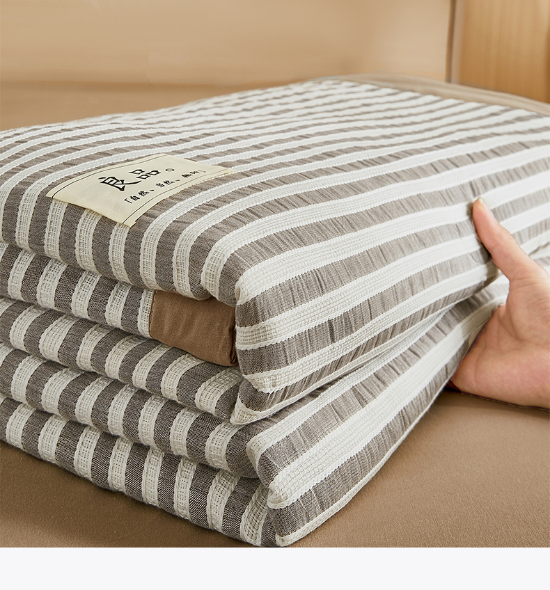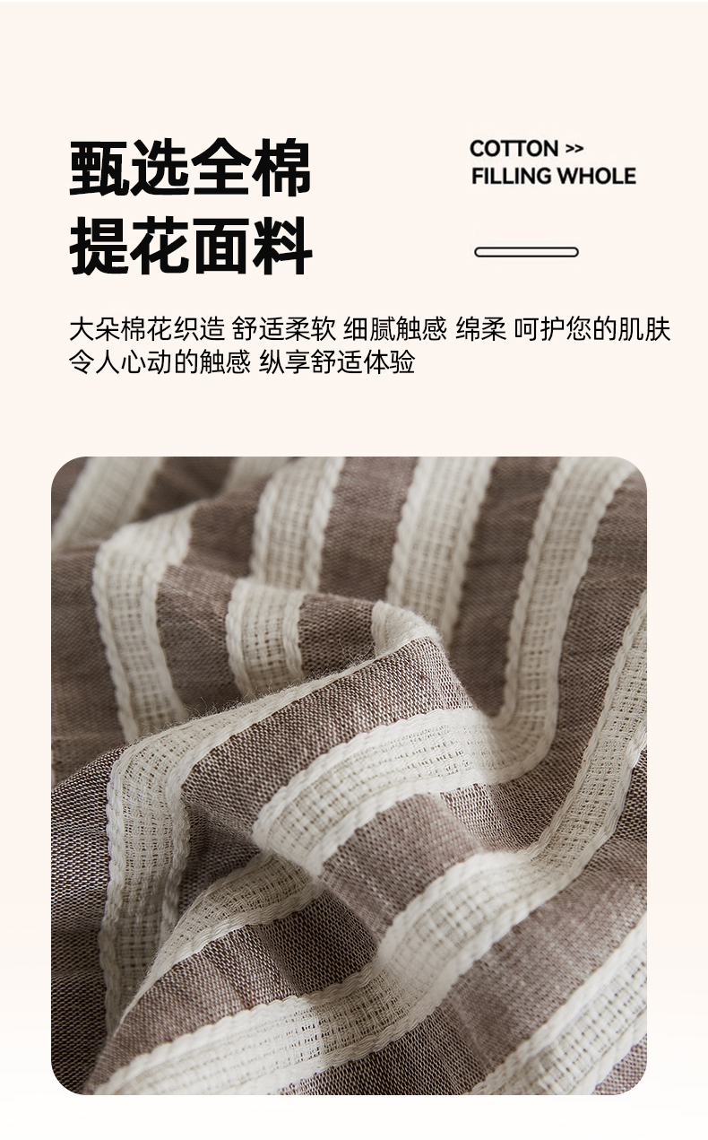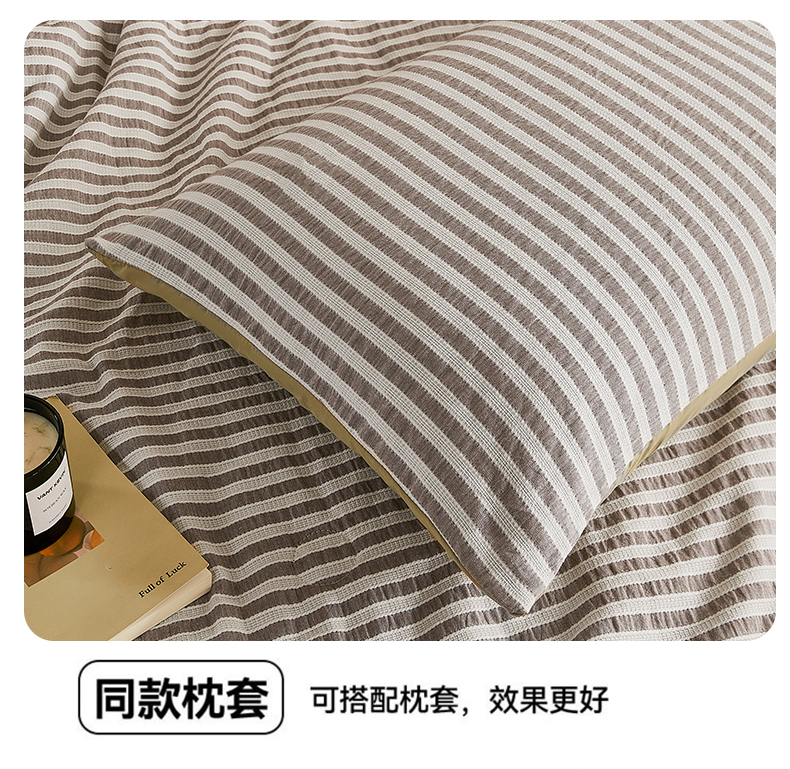 • 91家纺网 家纺一手货源 找家纺 鸣升家纺 2026新款A类全棉水洗棉条纹提花大豆纤维夏被四件套空调被 条纹提花驼
