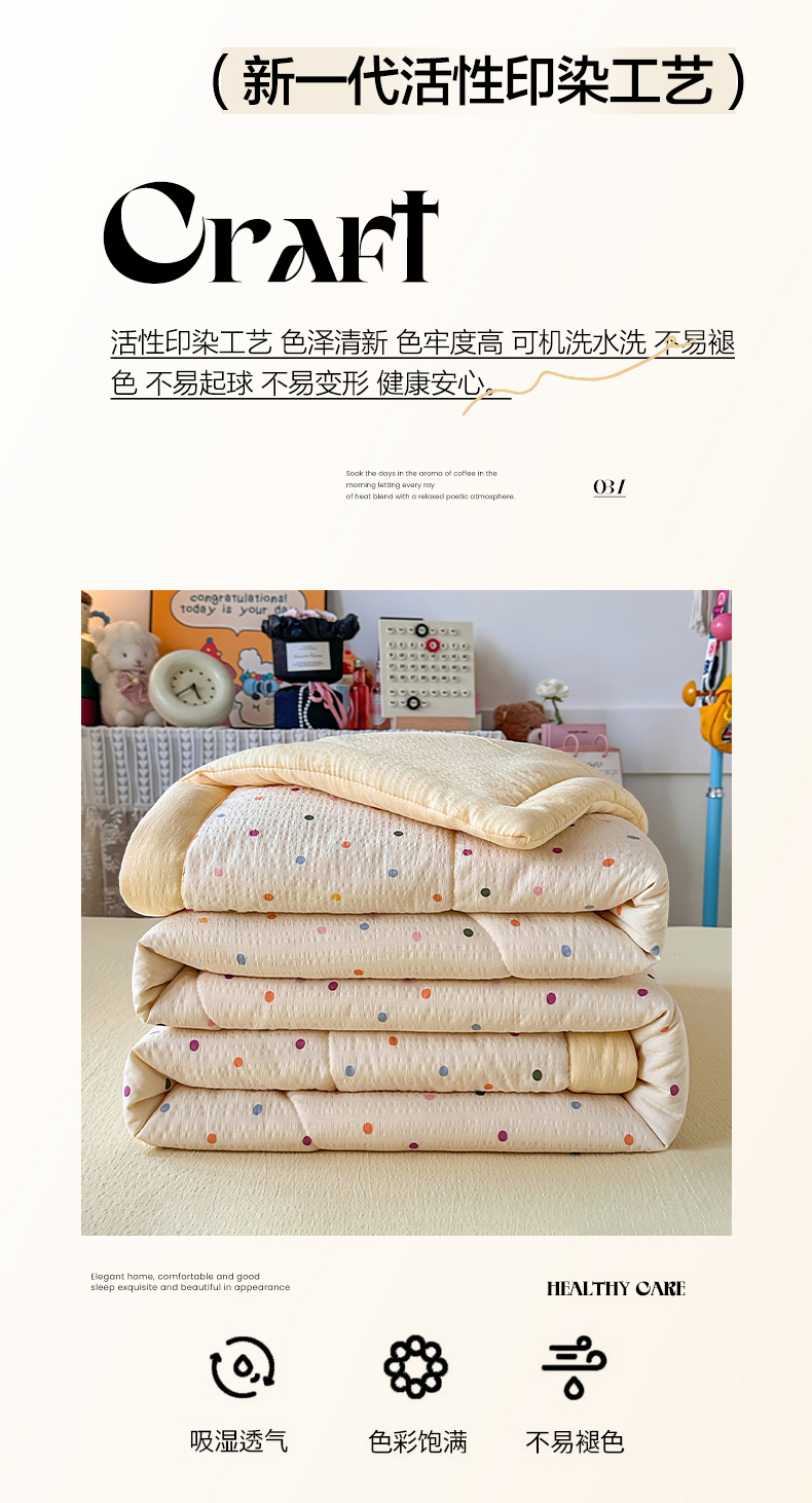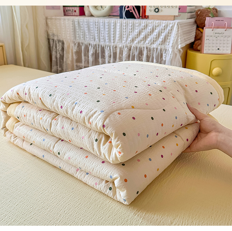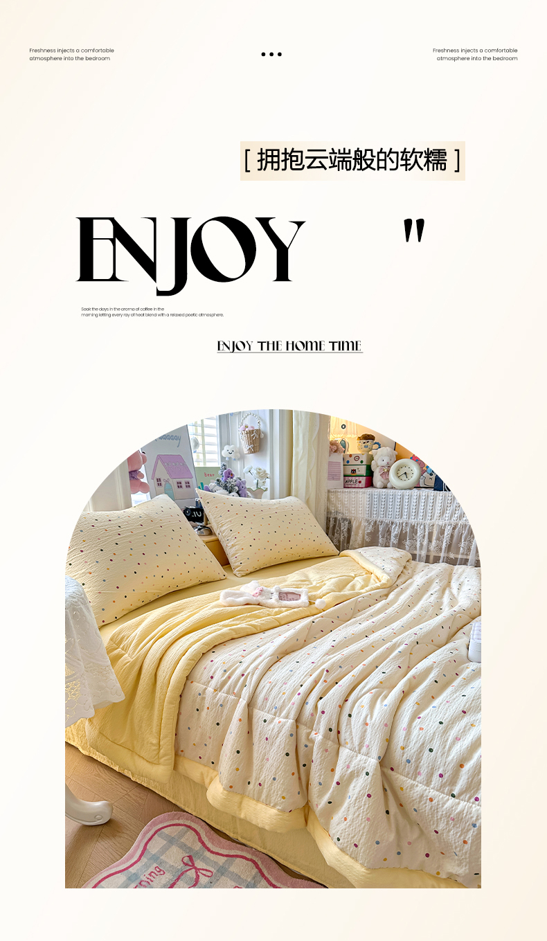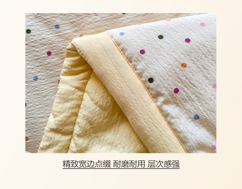当前位置: 91家纺网 > 商品网购 > 床品套件 > 四件套 > 夏被四件套 > 卡斯诺家纺馆 2026新款皱皱棉双层纱夏被四件套下载文件包含买家秀 奶油波点