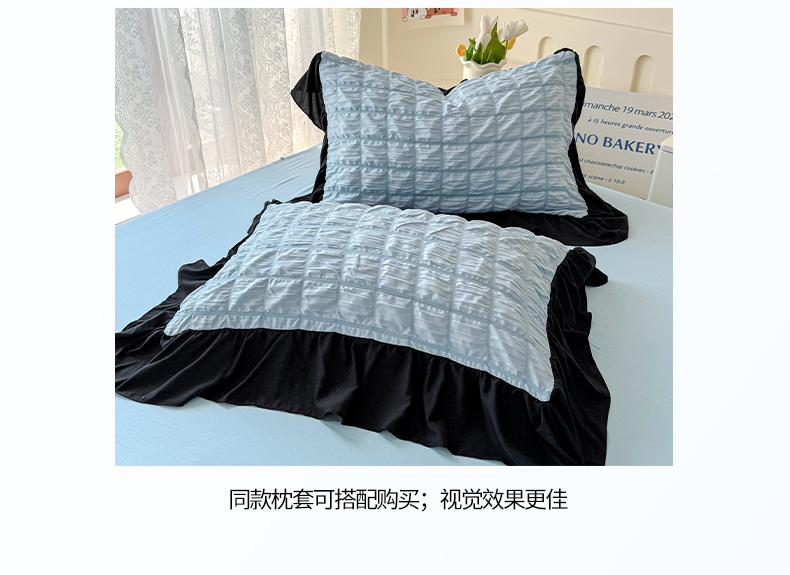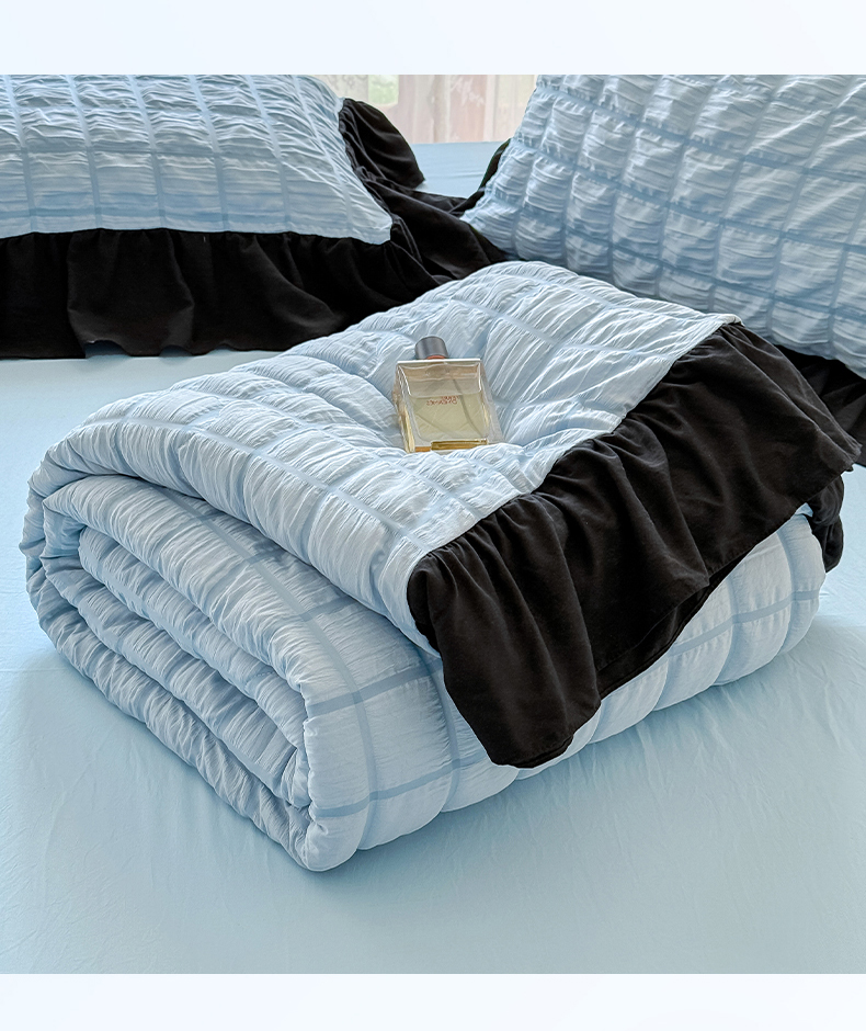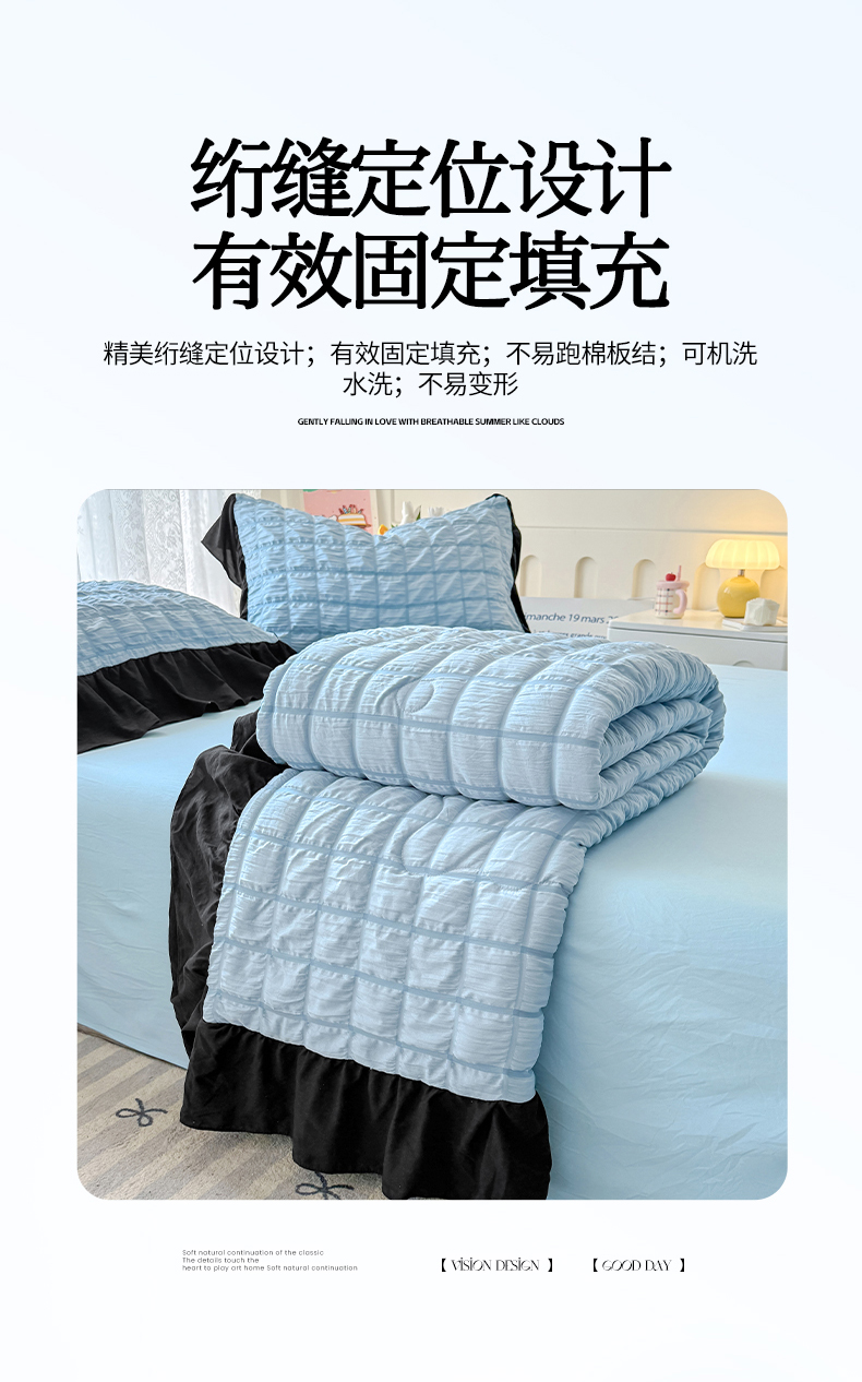 优卡迪家纺馆 2026春夏新款泡泡纱黑花边夏被夏被空调被四件套【下载文件夹包含买家秀】 蓝莓仙草