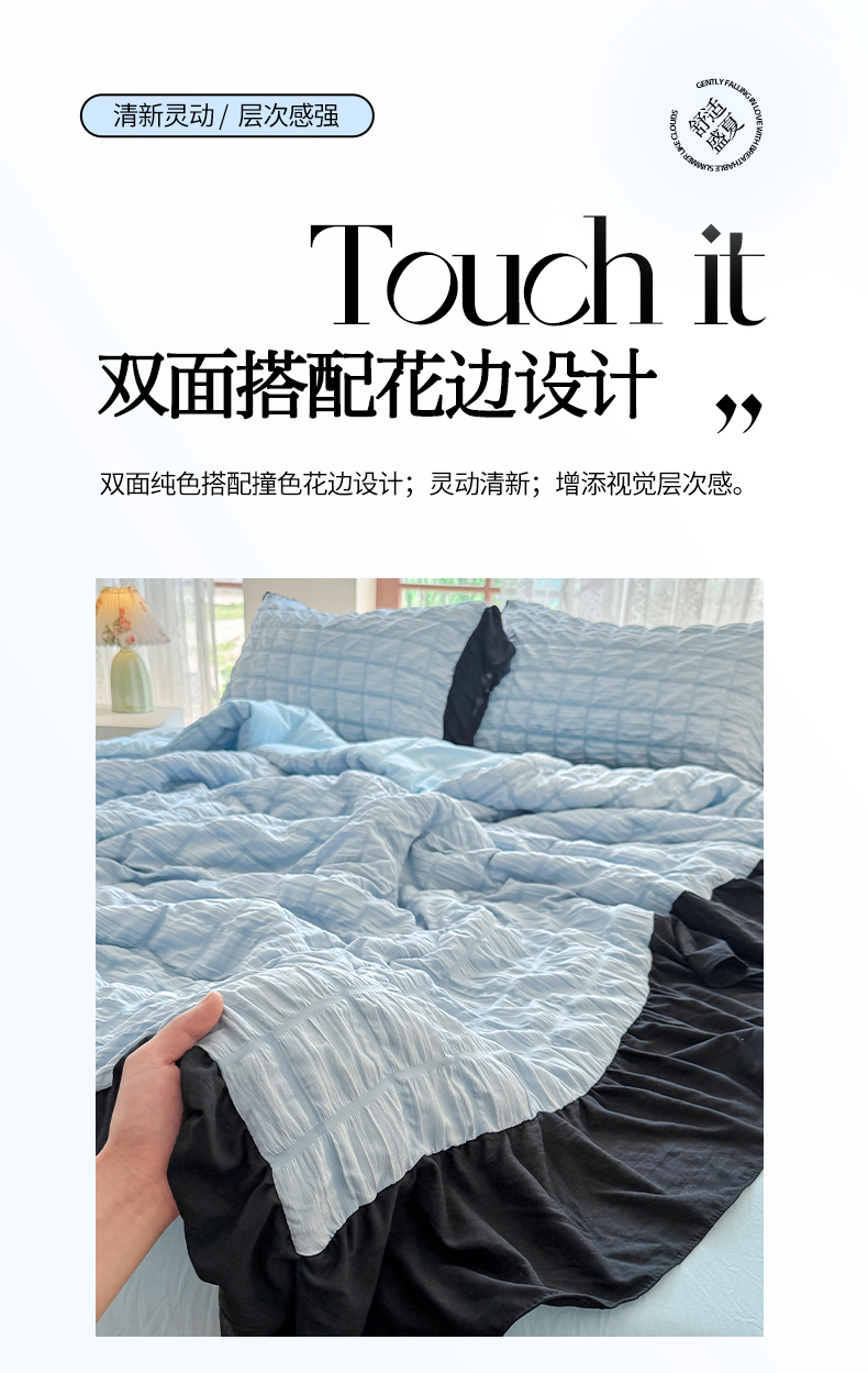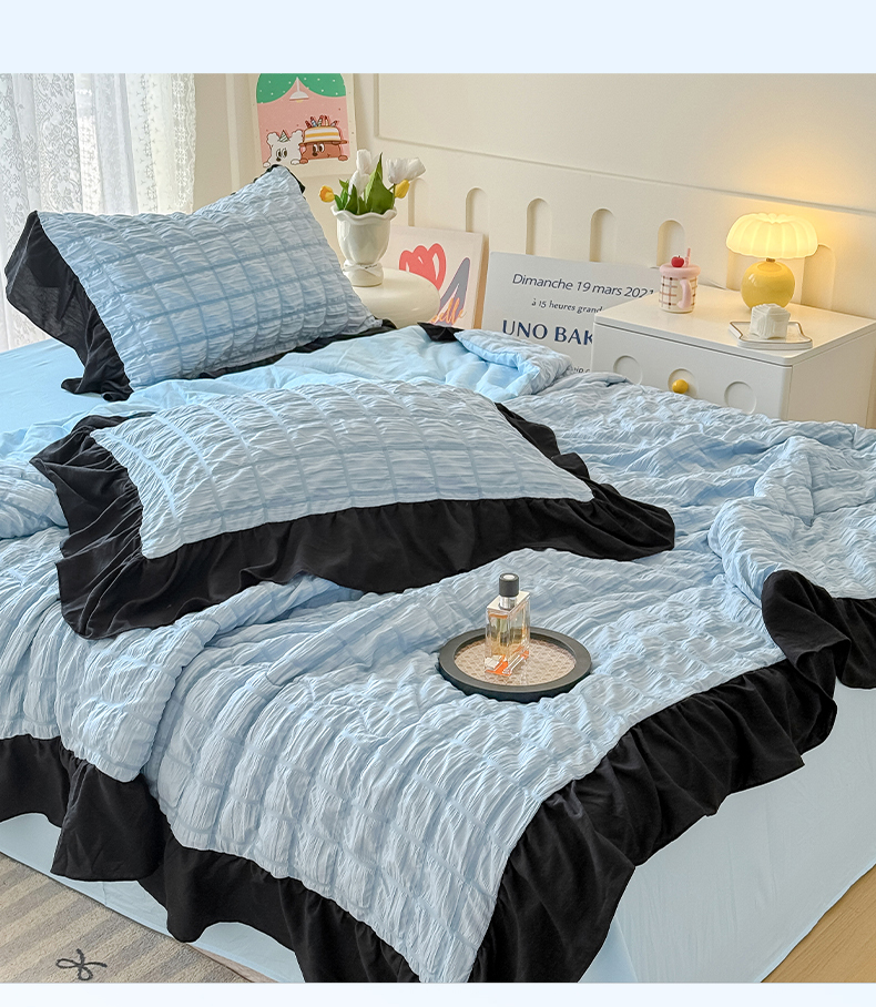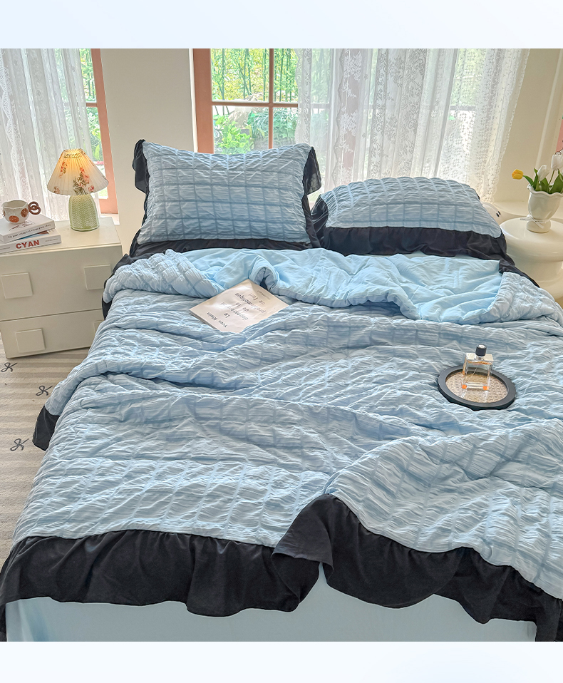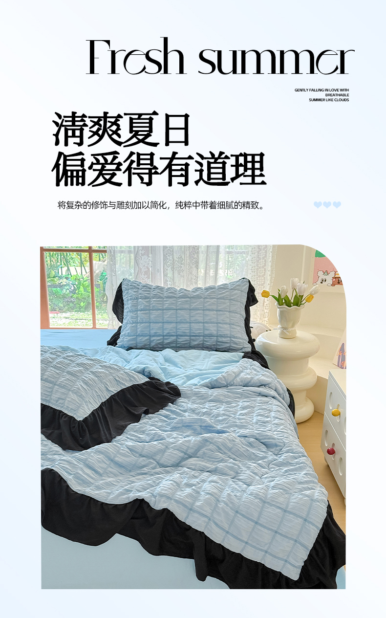 • 91家纺网 家纺一手货源 找家纺 优卡迪家纺馆 2026春夏新款泡泡纱黑花边夏被夏被空调被四件套【下载文件夹包含买家秀】 蓝莓仙草
