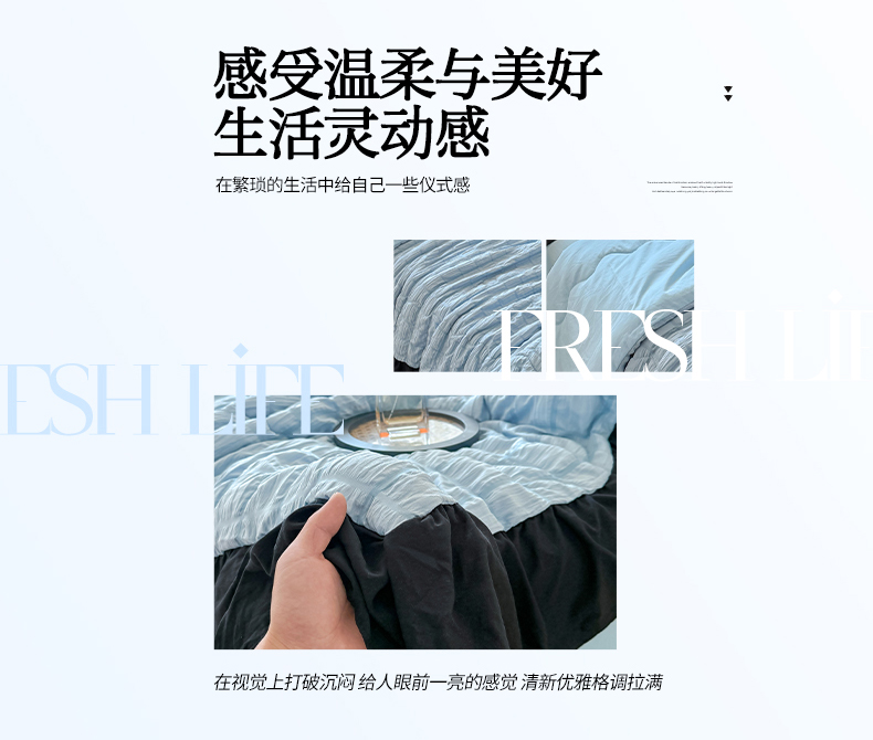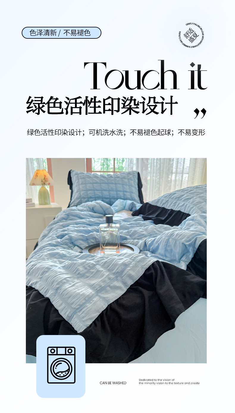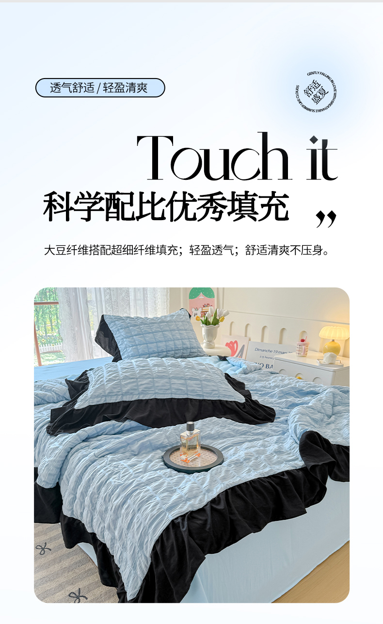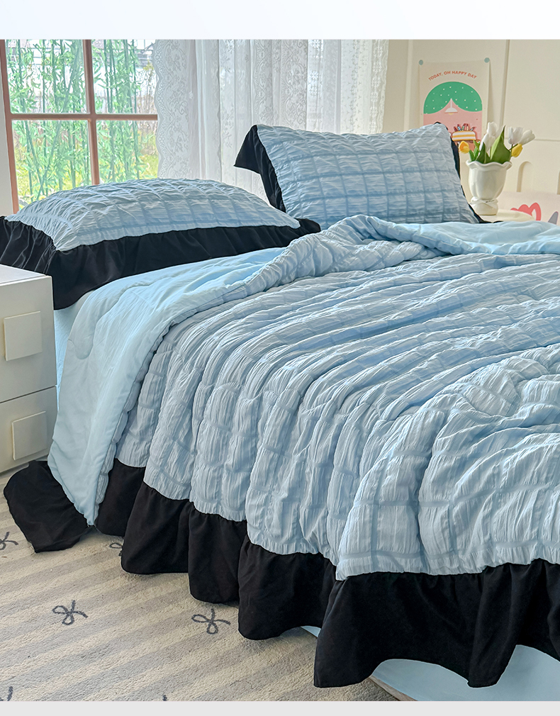 • 91家纺网 家纺一手货源 找家纺 优卡迪家纺馆 2026春夏新款泡泡纱黑花边夏被夏被空调被四件套【下载文件夹包含买家秀】 蓝莓仙草