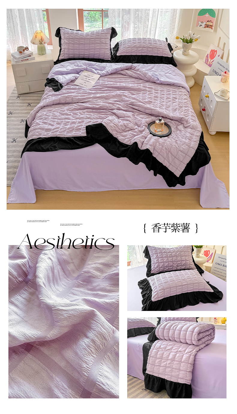 (总)优卡迪家纺馆 2026春夏新款泡泡纱黑花边夏被夏被空调被四件套【下载文件夹包含买家秀】,蓝莓仙草,魔芋橙汁,茉莉奶昔,奶油蜜桃,青柠蜜瓜,香芋紫薯