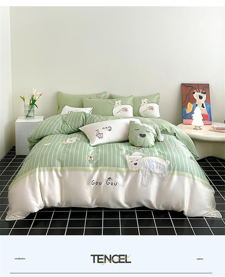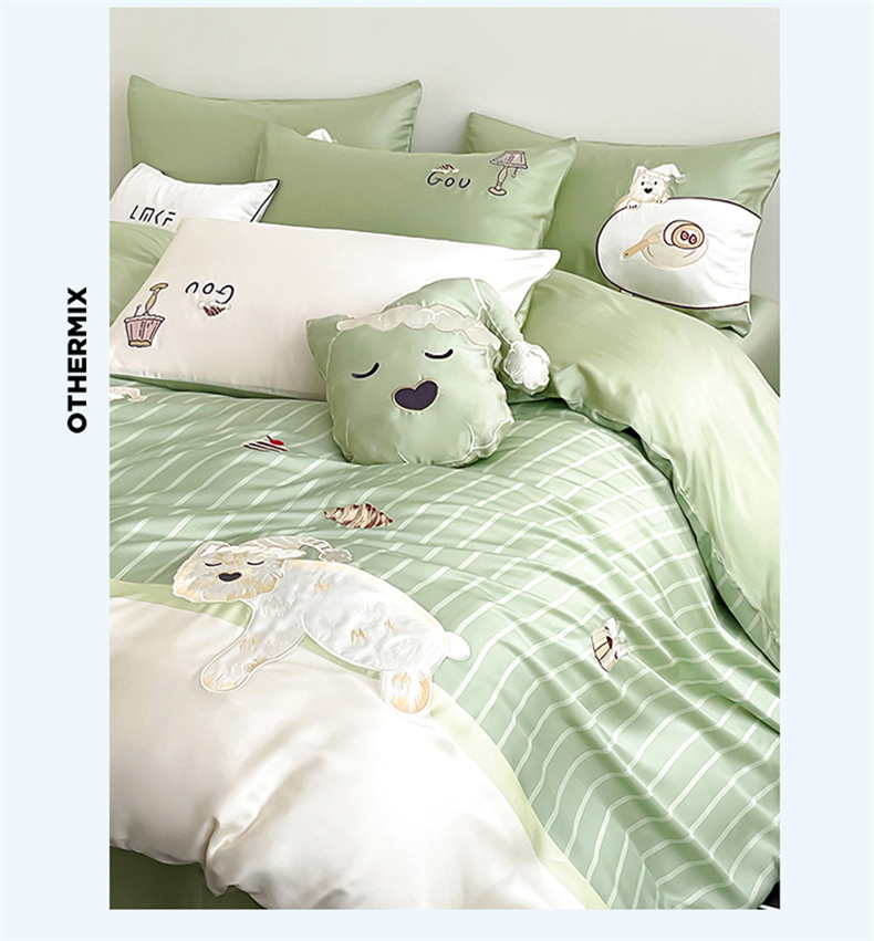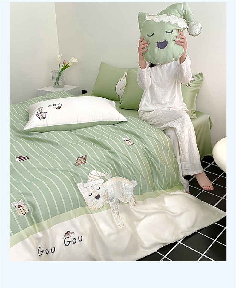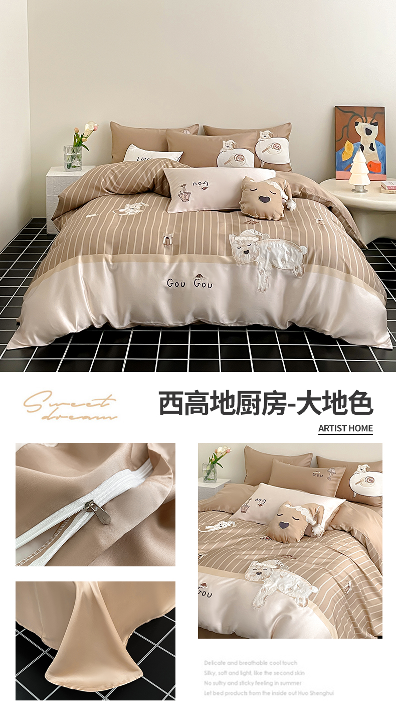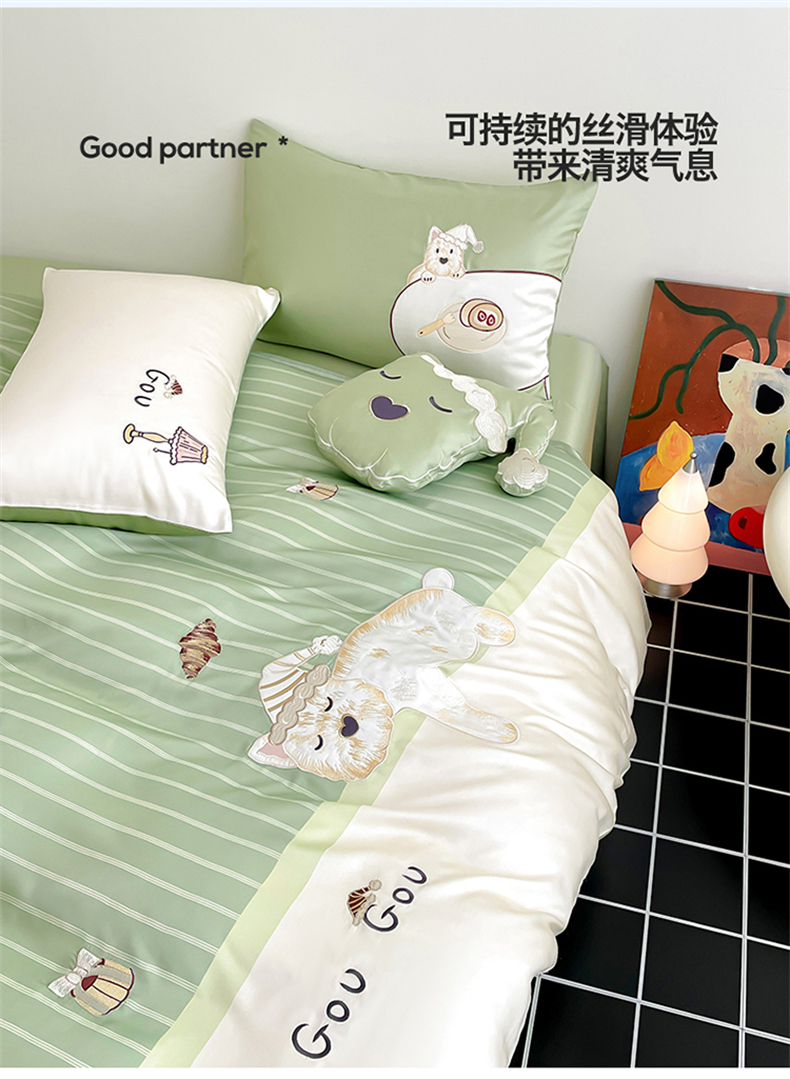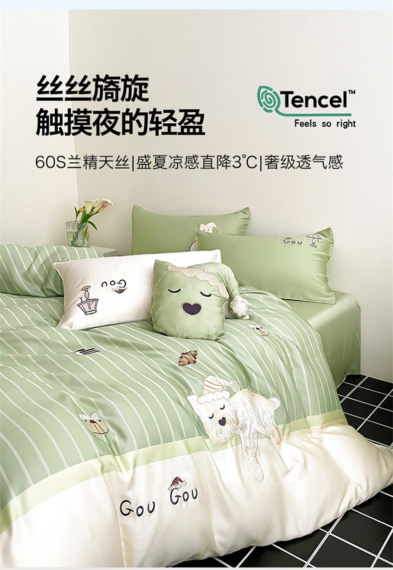 当前位置: 91家纺网 > 商品网购 > 床品套件 > 四件套 > 莱赛尔四件套 > 蓝米卡夫 2026夏季新款60S兰精天丝刺绣四件套-西高地厨房(礼盒) 西高地厨房-碧草色
